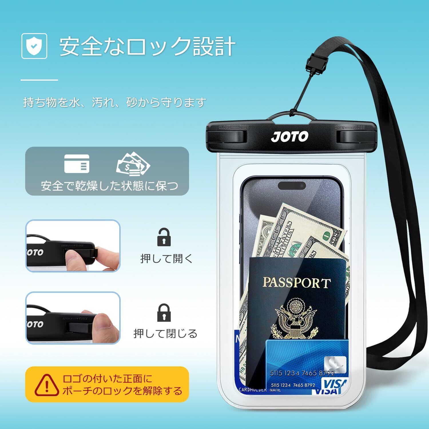 【数量限定】JOTO 防水スマホケース IPX8認定 お風呂 海 プール 温泉 首掛け式 ドライバッグ 登山 お釣り時の防塵・防水対策 最大7.0”スマホに対応可能 適用端末:iPhone 16 15 14 13 12 Mini Pro Max Galaxy S24 Xiaomi Pixel -クリアー | ニコニコSHOP