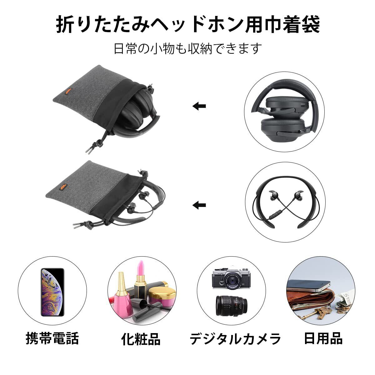 Desing Wish 折りたたみヘッドホン用 柔らかい ヘッドホンケース 軽量 携帯用 ヘッドホン巾着袋 ひっかき防止 防塵 旅行用 ヘッドホン ケース ポーチ SONY, Soundcore, Nokia, BOSE, Edifier など様々なヘッドホンとの互換性あり 20 x 21 CM (S, Grey)