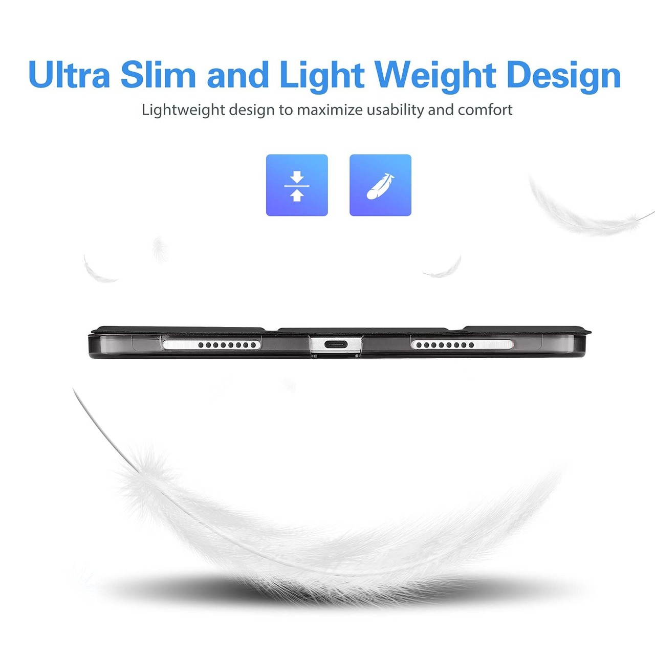 � 【スタンド機能】三つ折りのフロントカバーが視聴やタイピング時の立ち位置を調整します;開口部が精確的ですべての機能へ自由にアクセスできます(カメラ、スピーカー、ポートなど)。