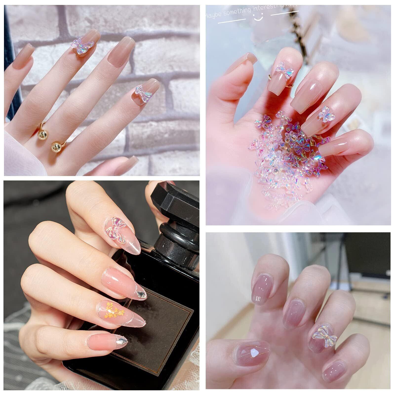 【可愛いデザイン】クリア感があるオーロラカラーの蝶々、リボンは可愛くて夏のネイルに最適です。オーロラカラーなので、光の角度によって煌きが変わります。立体感があり存在感が抜群です。ネイルをもっと美しく華やかに。