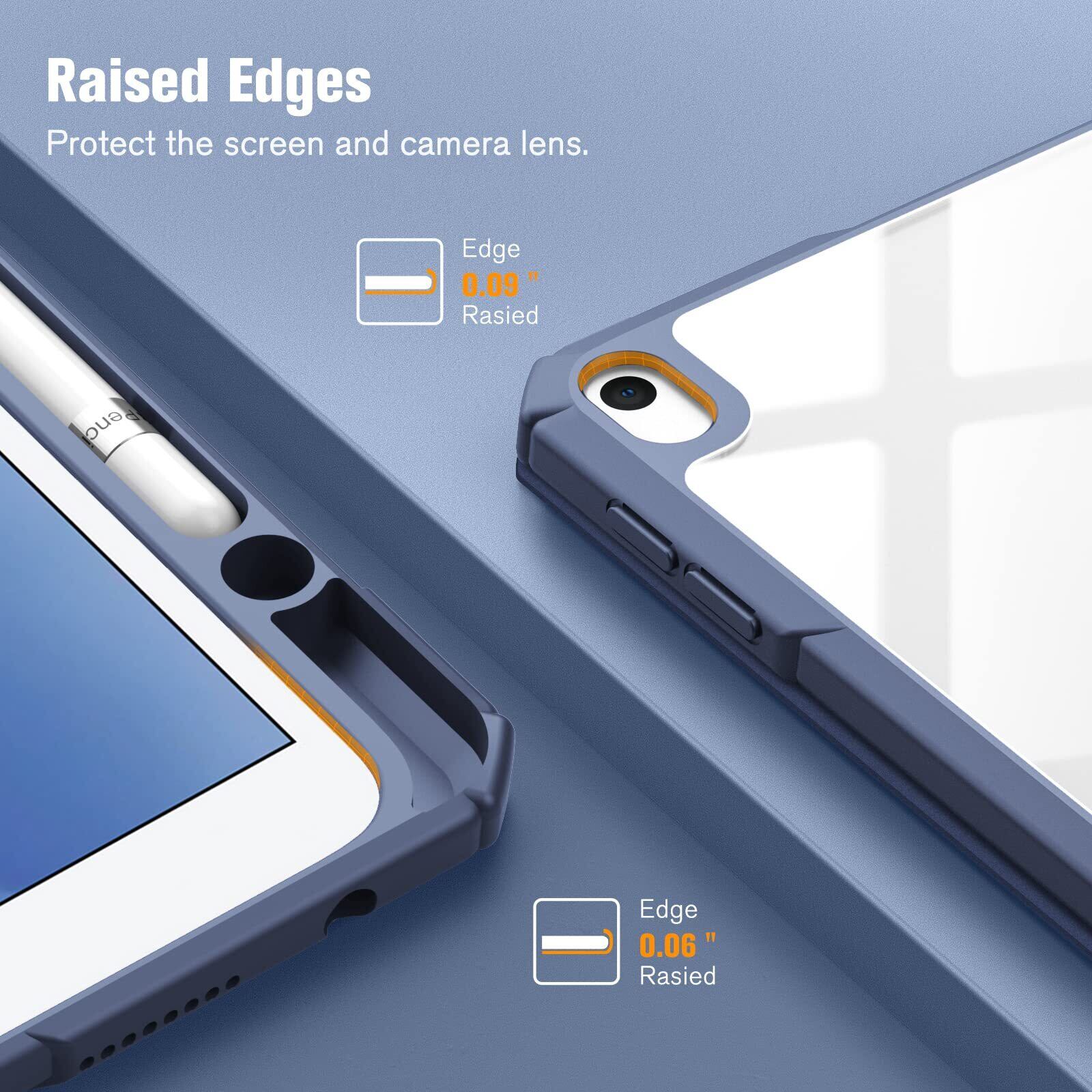 【材料・透明バックカバー】 ケースの表面はPUレザー素材を利用して、軽量、超薄を備えます。ポリカーボネート素材を採用している透明バックカバーは汚れや傷つけなどを防止するだけでなく、iPad本体の色と美しさも活かせます。透明バックカバーの枠は柔軟な TPUを採用して、取り付けも簡単にできます。フロントカバー内部材質はマイクロファイバーで、摩擦によって発生する傷を抑え、液晶画面を保護しきれいに保ちます。(ご注意:透明バックカバーには保護用のフィルムがついていますので、ご使用前に保護フィルムを剥がしてください。)