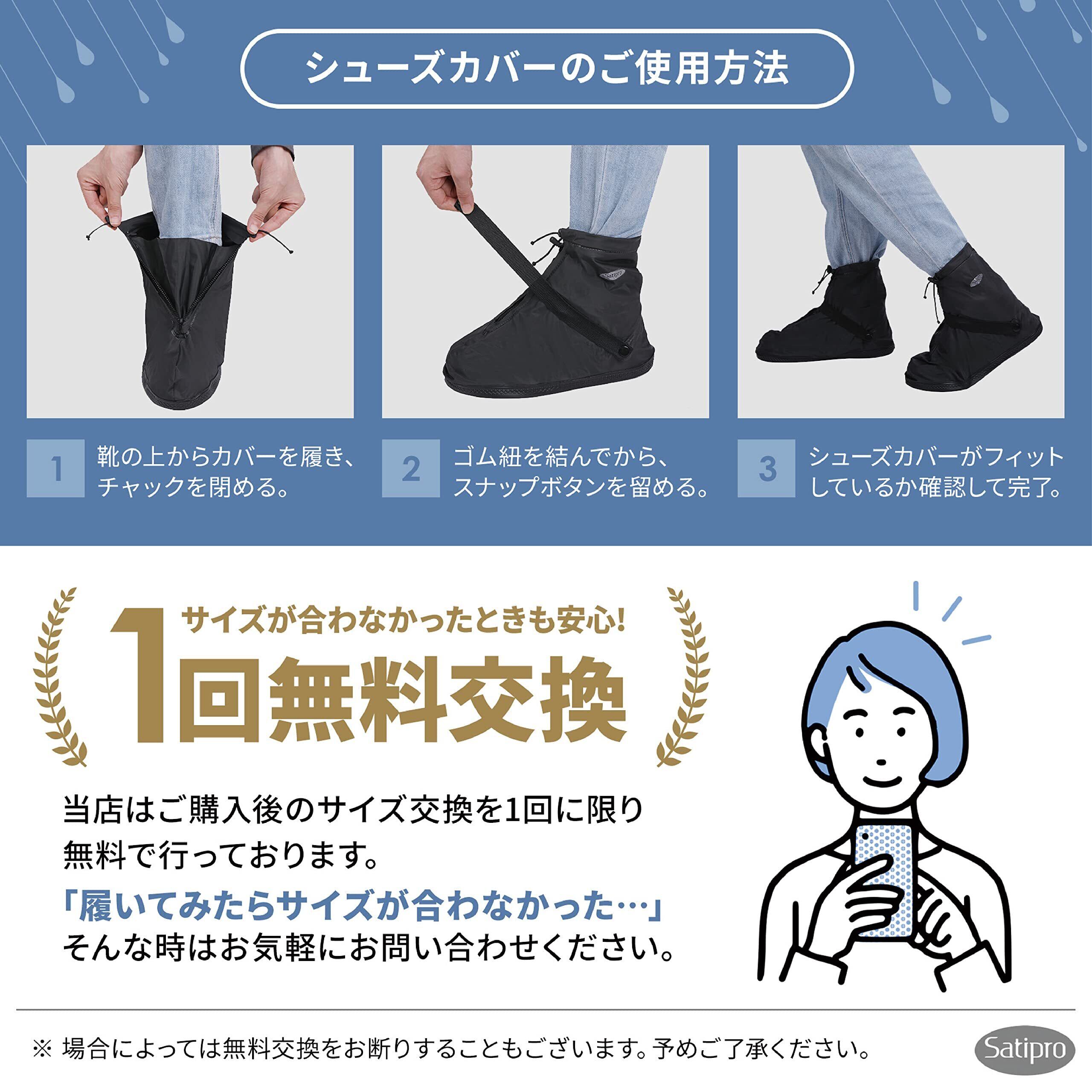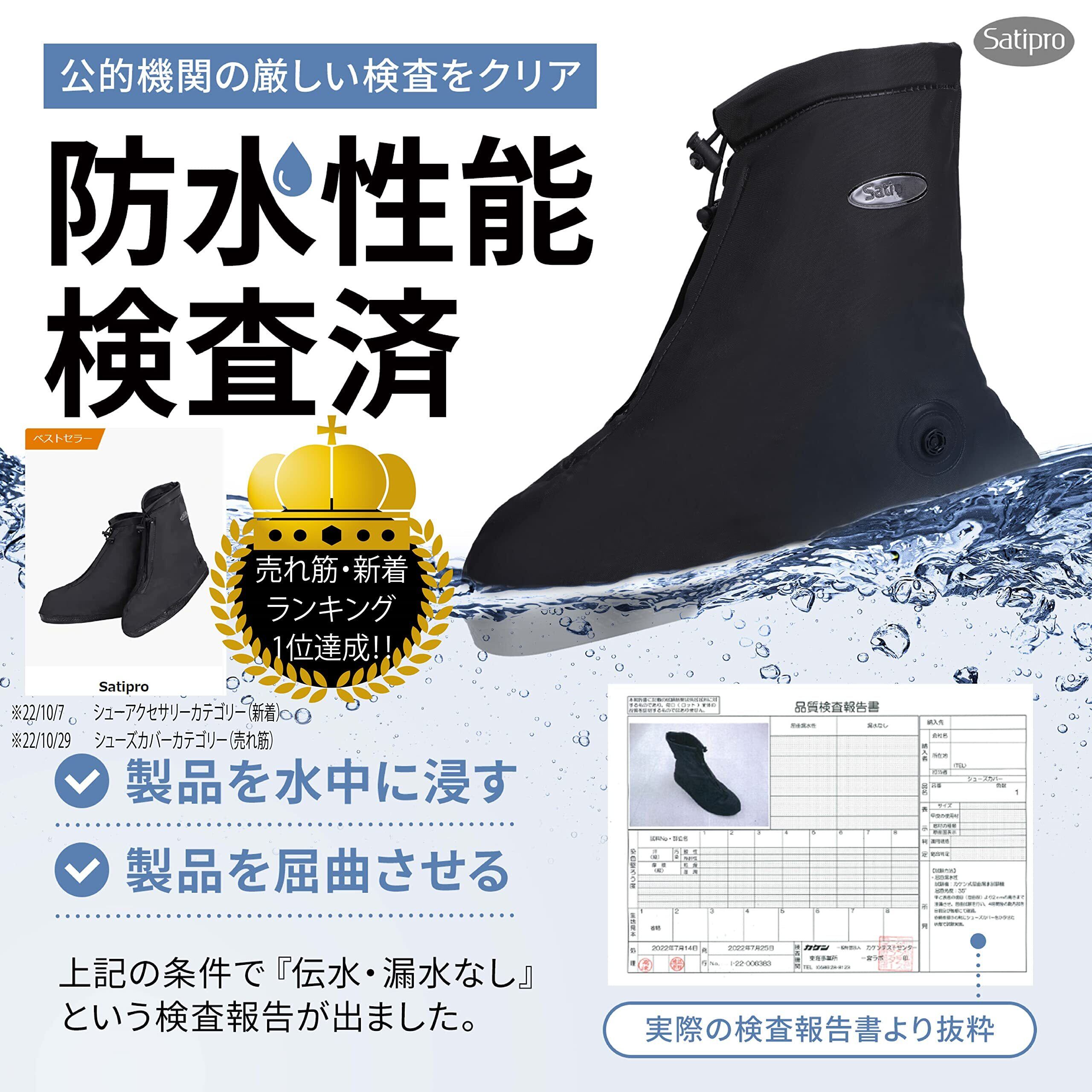[Satipro] 国内防水検査合格 シューズカバー 防水 レインシューズカバー 靴カバー 雨 通勤 通学 自転車 バイク アウトドア キャンプ 日本語説明書付き 1足分入り