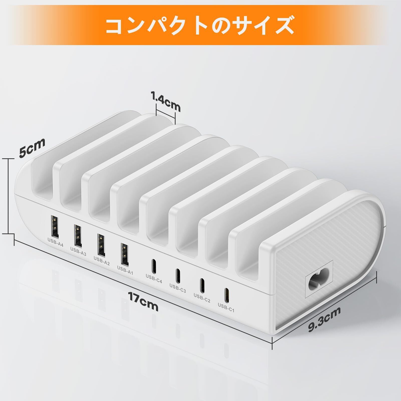 【特価商品】USB充電ステーション 8ポート 65W 【4*PD&4*USB A】卓上充電スタンド 複数 スマホ充電スタンド 8台同時充電 PSE認証済 複数台対応 Android/iPhone/iPad/kindle/タブレット/PSP 仕切り板 間隔調整可能 収納便利 卓上 ホワイト | ニコニコSHOP