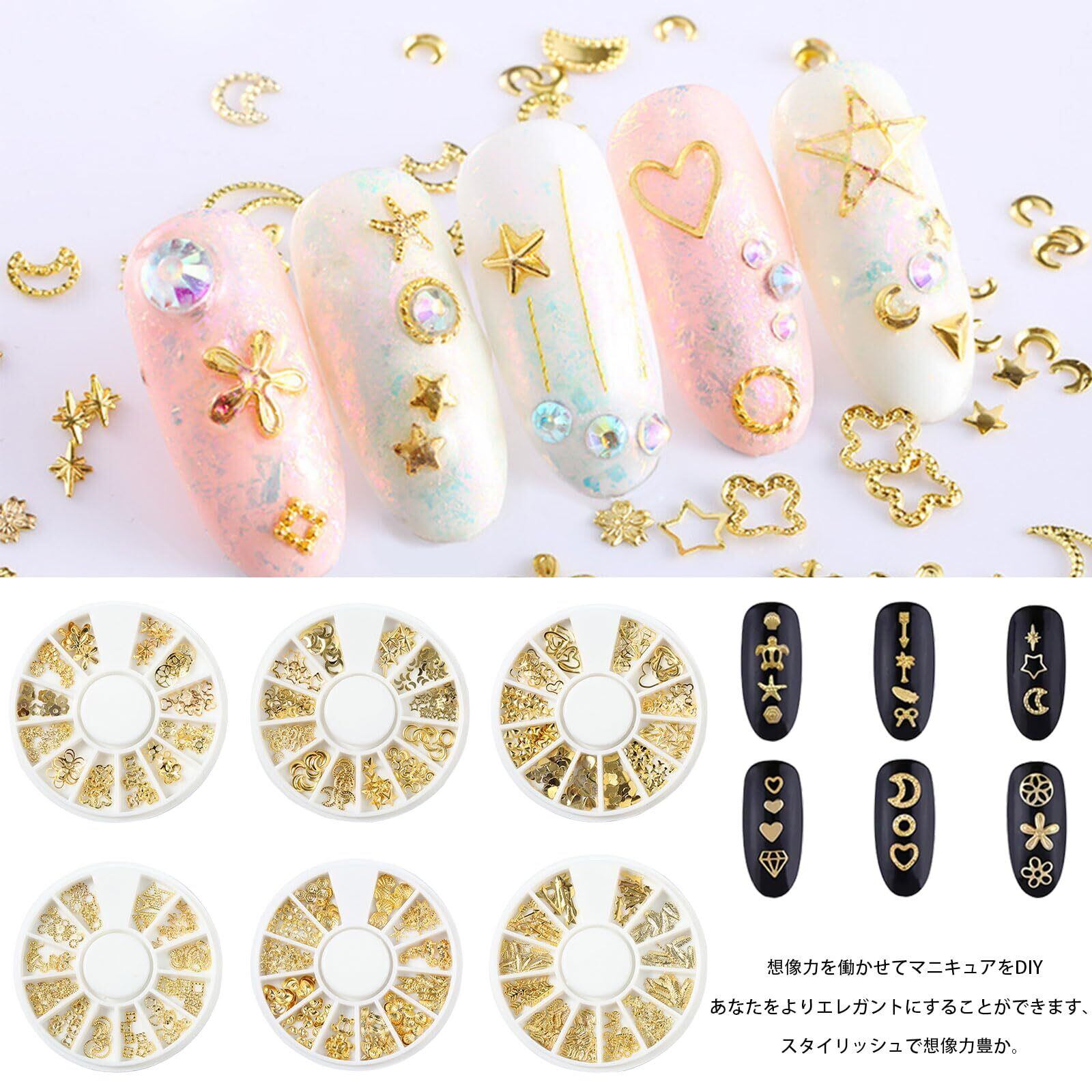 Kingsie ネイル スタッズ メタルパーツ ネイルパーツ 夏 ジェルネイル ネイルアート レジン 手作り 6ケースセット (A)