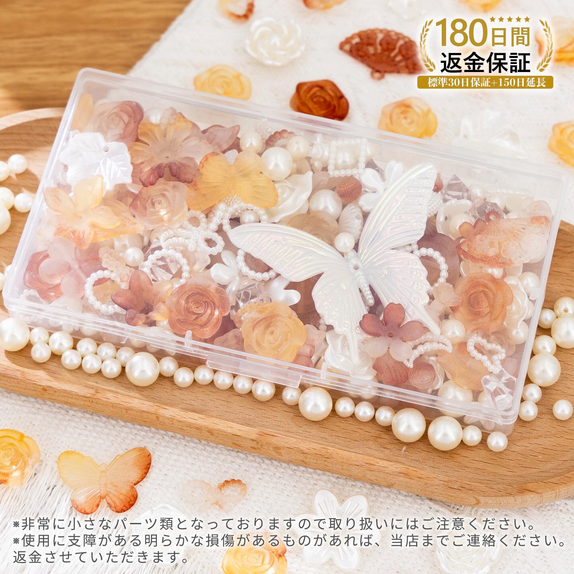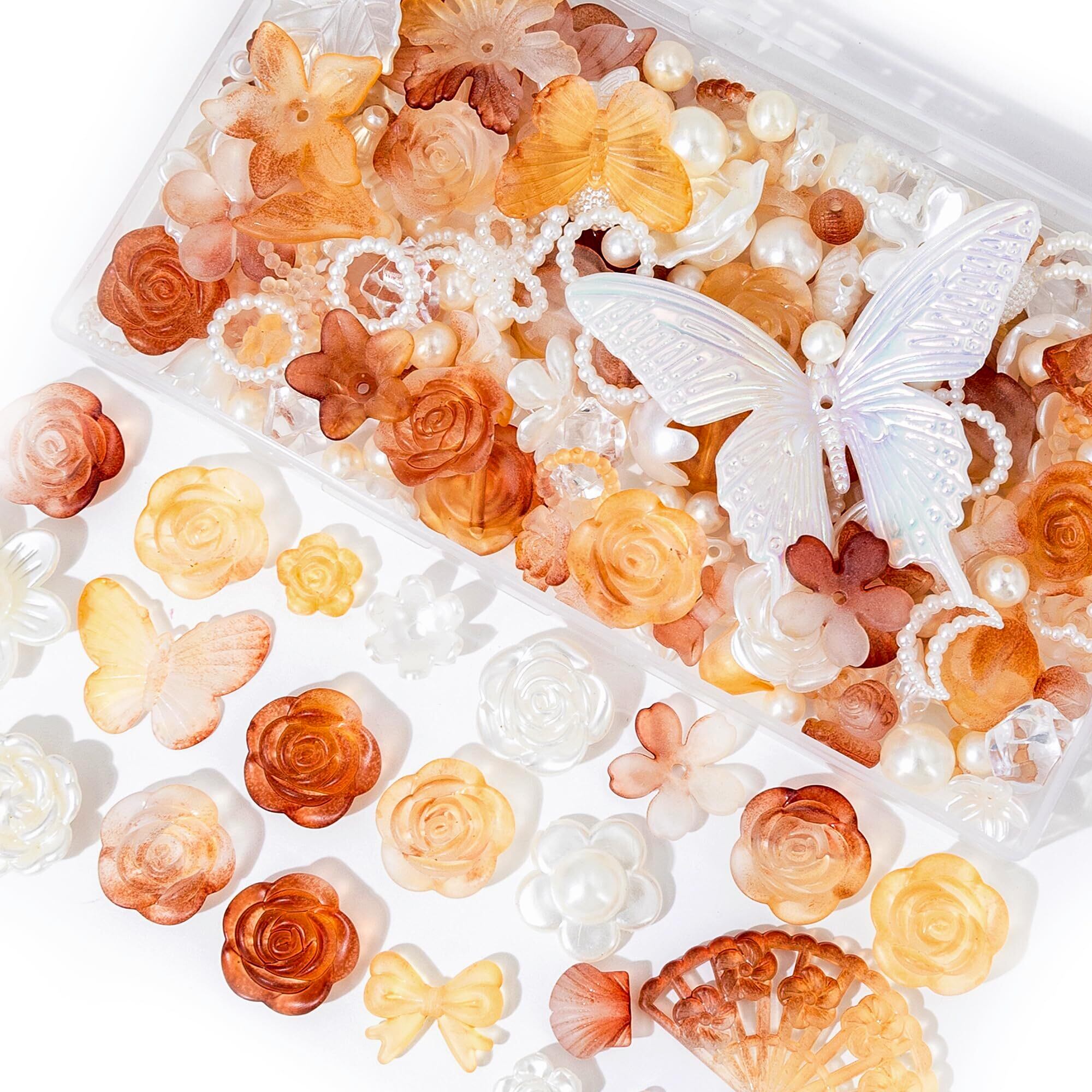 デコパーツ ビーズ ホイップデコ パーツ 【特典ビーズ含む·26セット展開·約110個】 アクリル セット トレカ 硬質ケース デコ 手芸 ハンドメイド デコ 素材 可愛い デコレーション セット アクセサリー 薔薇 パール 貝殻 リボン 蝶 クリア デコトレカケース ロココ調 (【R】茶色グラデーション)