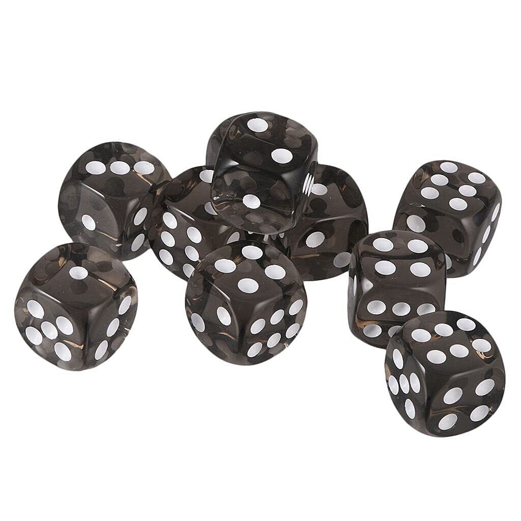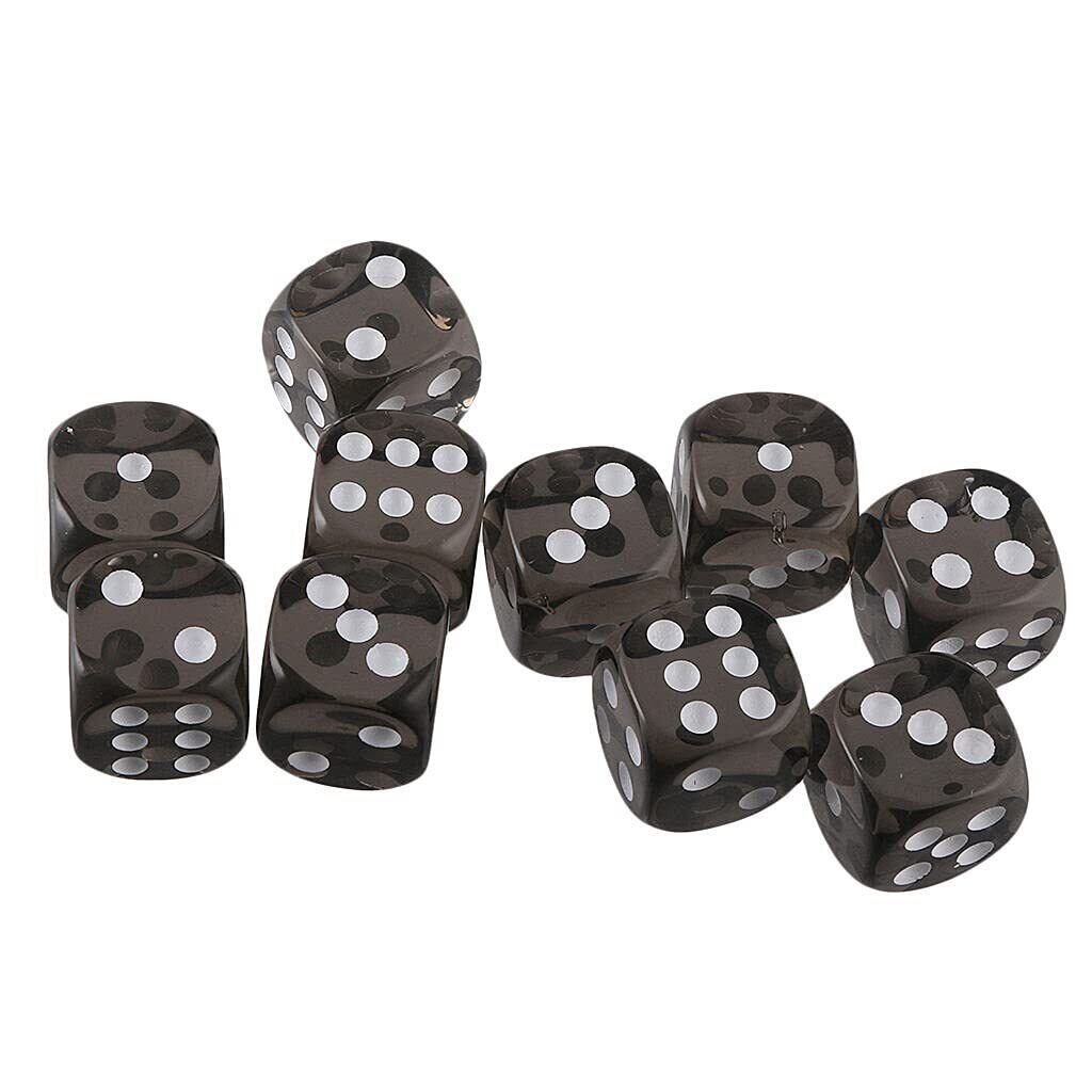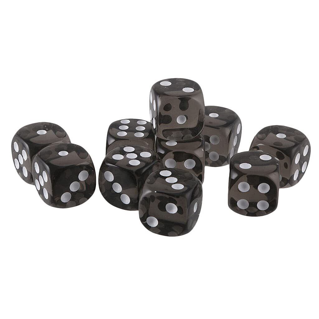 10个套装 TRPG游戏 亚克力 六面骰子 D6 骰子 骰子 共10种颜色 - 黑色