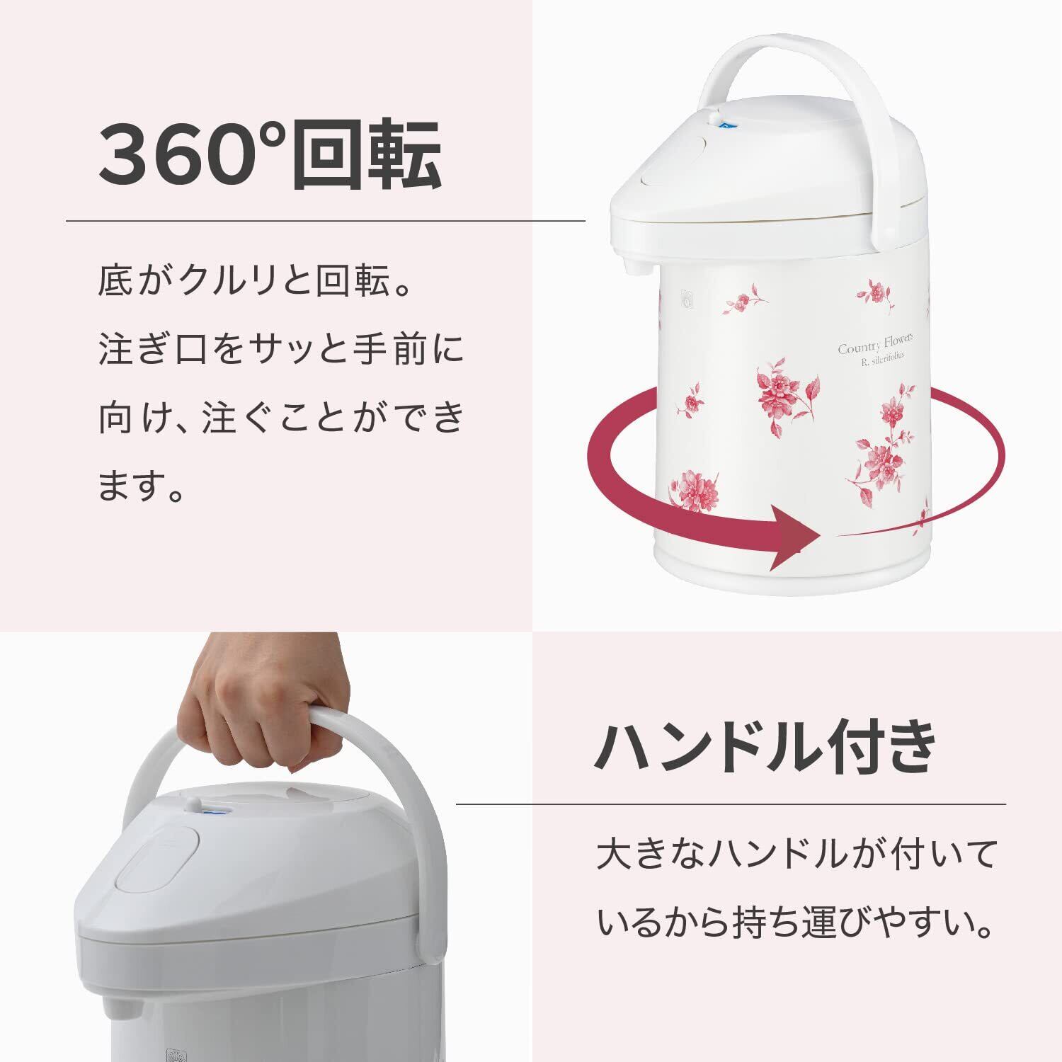 【特価商品】ピーコック魔法瓶工業(The-peacock) ピーコック エアーポット 2.2L 保温 保冷 ガラス製 魔法瓶 中栓無し 保温ポット 保温力 電気不要 プッシュ式 まほうびん ポット 日本製 カントリーフラワー MPP-22 FLC | ニコニコSHOP