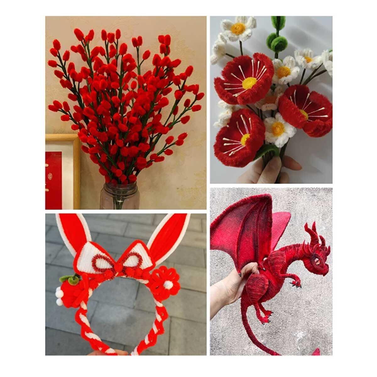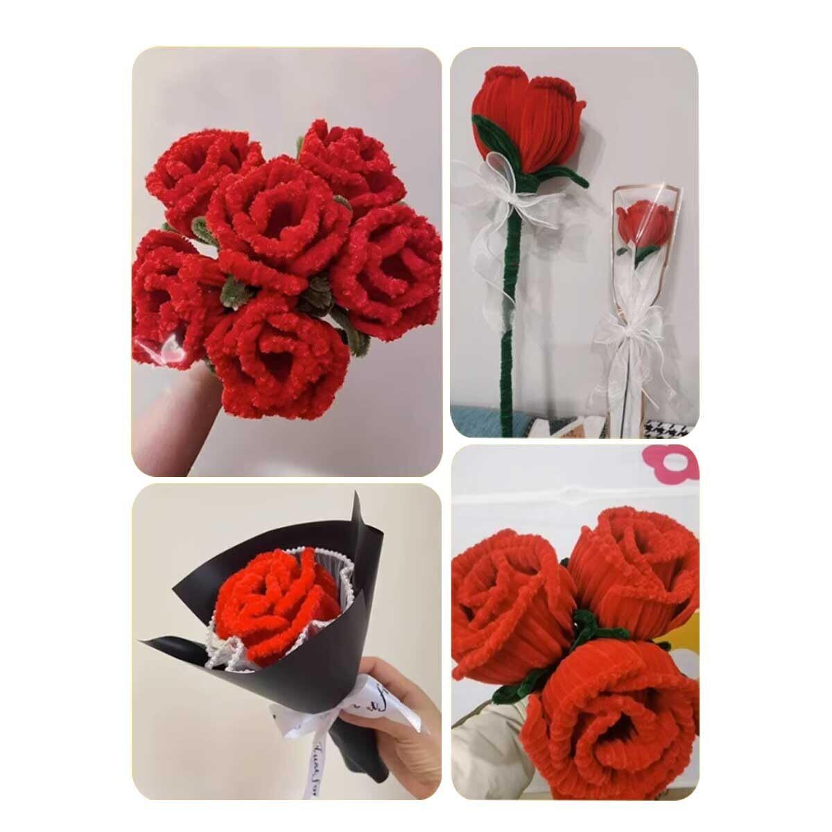【セット内容】:手芸モール*300本(レッド色*200本+緑色*100本)+地巻ワイヤー*30本+フローラテープ*1巻【ご注意:セットには包装紙、リボン、ホットメルト接着剤スティック、染め粉は含まれません。】