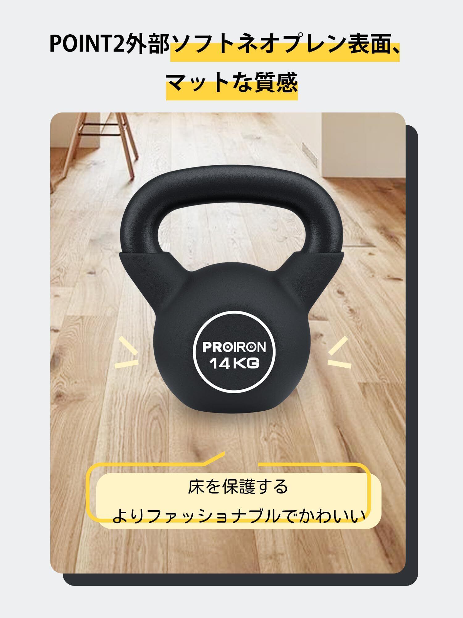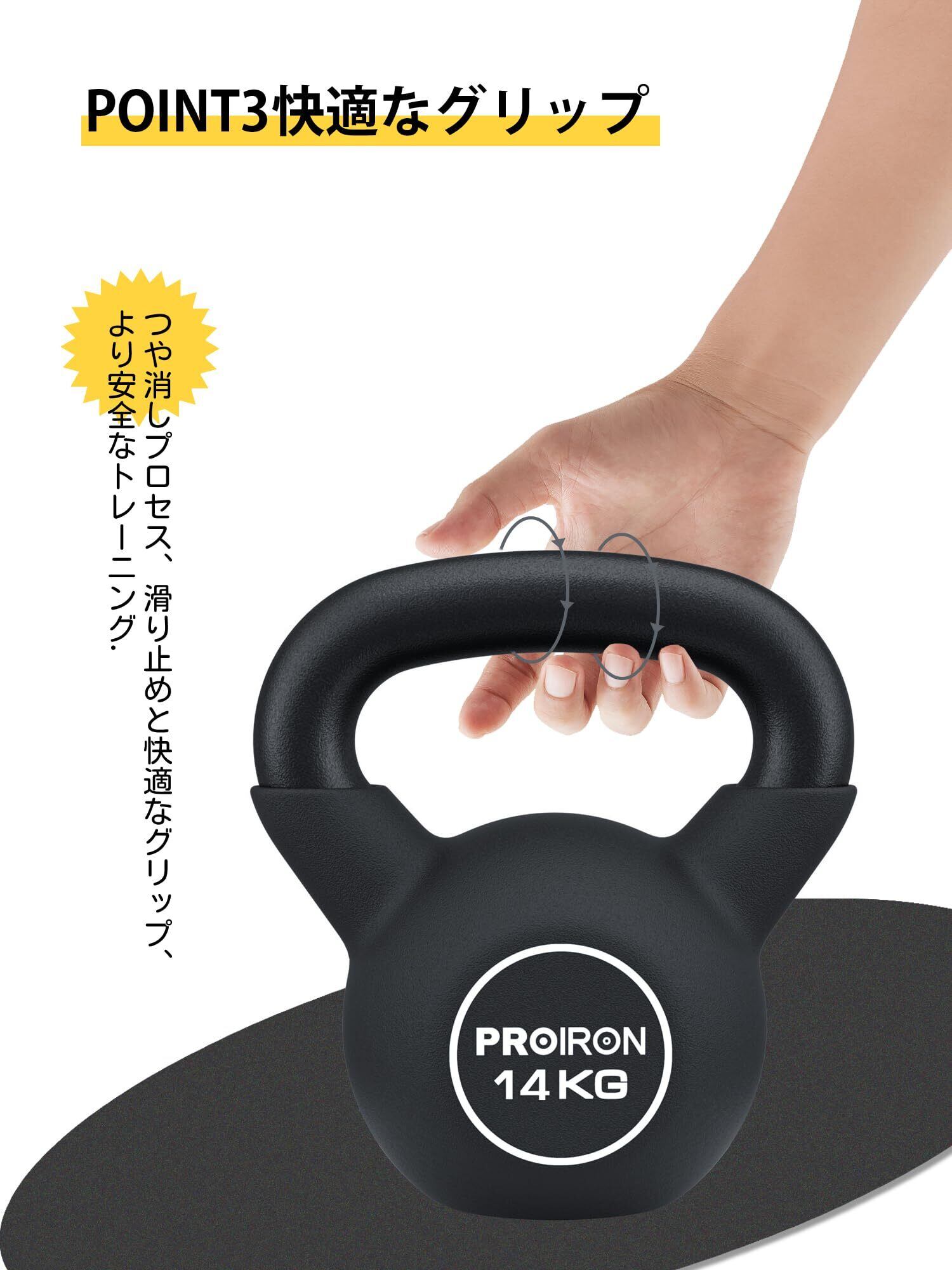 PROIRON ケトルベル ネオプレン kettlebell 一体型鋳鉄製 壶铃 鉄アレイ ケトル 4kg 6kg 8kg 10kg 12kg 14kg 16kg 20kg 重り ケトル