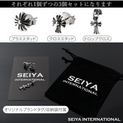 【セイヤインターナショナル】ピアス メンズ レディース 片耳 クロス 十字架 シルバー925 スタッドピアス (3個セット)