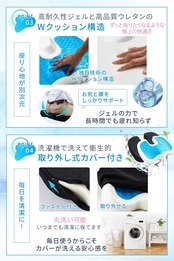 【お尻、腰の負担を大幅に軽減】低反発ウレタンフォーム素材とジェル素材のWクッション構造で包み込まれるようなクッション性を実現。テレワークやデスクワークによる長時間の着座をサポートし、お尻が痛くならないだけではなく、姿勢を正し、人間本来の姿勢へ導きます。お尻や腰に痛みを感じている人はもちろん、お尻・腰の痛みの予防を検討している方にも最適なクッション・座布団です。一般的なジェルクッション・ゲルクッションと比べてもしっかりした厚みがあり、お尻・腰のサポート具合が圧倒的に高いのも特徴です。