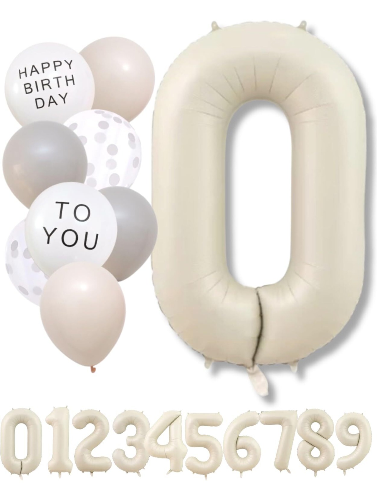 La Kissa 数字 バルーン ベージュ 大きい 誕生日 風船セット くすみ ナンバーバルーン アイボリー バースデー デコレーション (0, くすみホワイト)