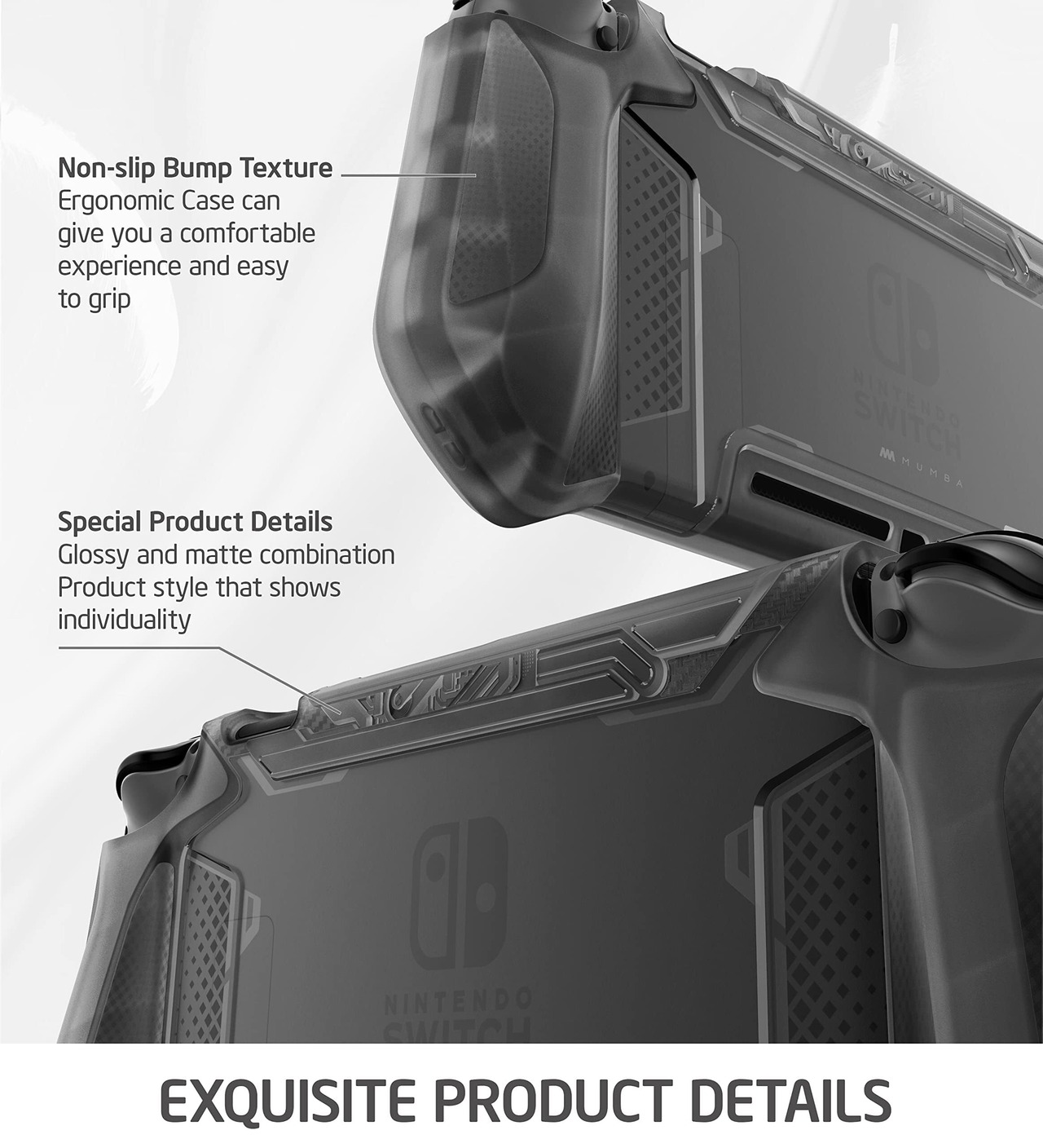 Mumba Nintendo Switch 用 ケース TPUグリップ 保護カバー ドッキング可能 アクセサリー Nintendo SwitchとJoy-Con コントローラー対応 [Blade シリーズ] (透明黒, Nintendo Switch)