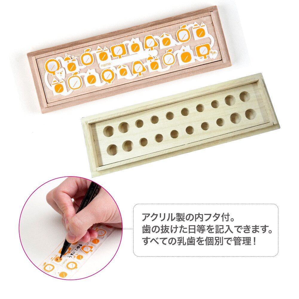 【日付が書き込める】アクリル製の内フタ付。油性ペンで歯の抜けた日等を記入できます。