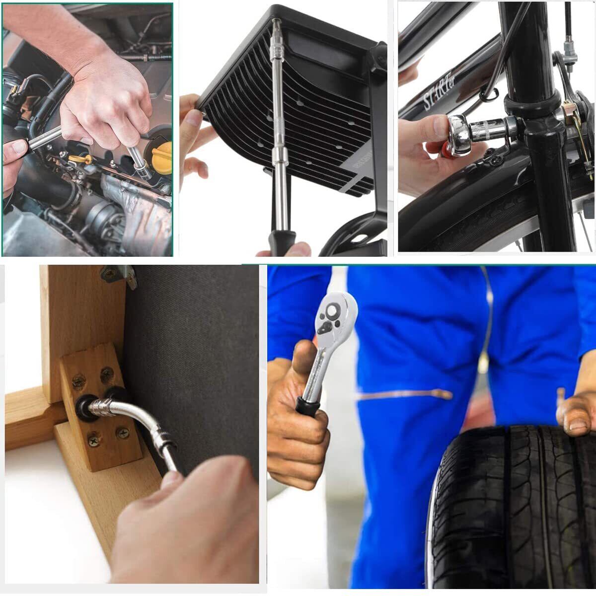 【使用場面】各種ボルト・ソケット・ネジの締付け、緩め作業できます。DIY作業、修理、メンテナンス、自動車修理、オートバイ、自転車、機械修理に最適です。車や設備の保守、点検、そのほかの作業用工具、細やかな動きが可能で狭い場所での作業性は抜群、簡単な補修や緊急時の備えとしてツールをお勧めます。