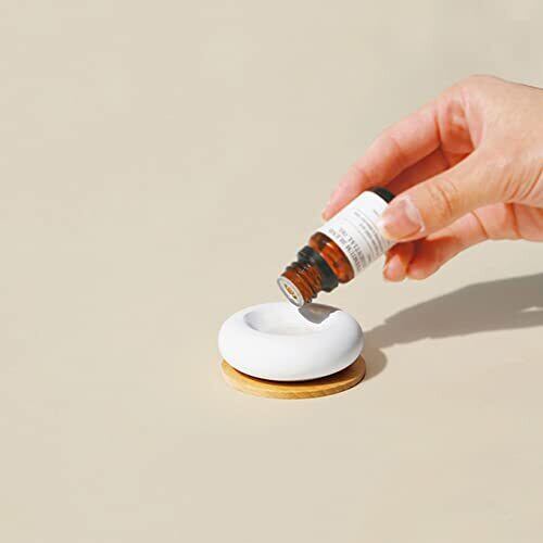 ●本体を付属のコースターに置き、中央のくぼみにエッセンシャルオイルやアロマオイルを直接2~5滴垂らし、香りをお楽しみください。
