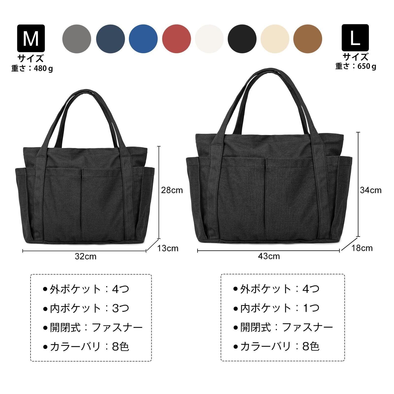 [imeetu] トートバッグ マザーズバッグ キャンバス トート レディース メンズ 肩掛けバッグ グローサリー 通学 帆布 大容量 多機能 無地 (Lサイズ)