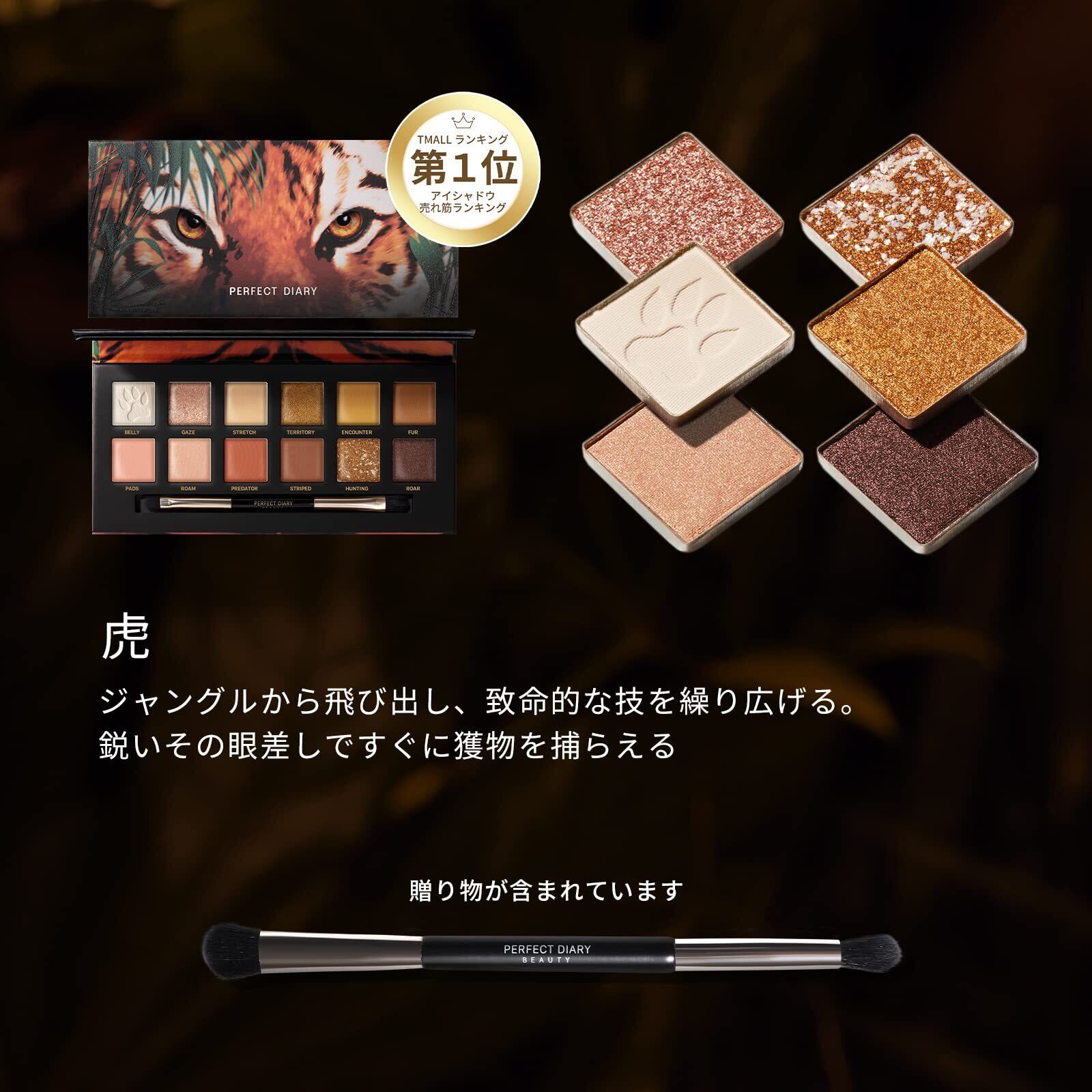 PERFECT DIARY パーフェクトダイアリー 動物アイシャドウパレット (1.2gx12色) (虎 オレンジブラウン)