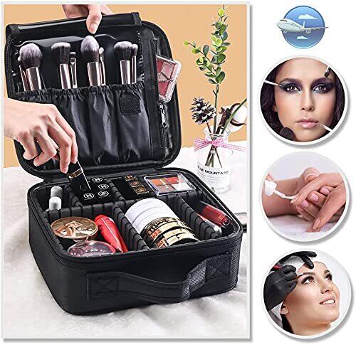 Viemior メイクボックス プロ用 コスメボックス メイクポーチ 機能的 大容量 化粧ポーチ コスメポーチ 持ち運び メイクぼっくす 化粧品 メイク 道具 収納ボックス メイクブラシバッグ 旅行 出張用 (黒)