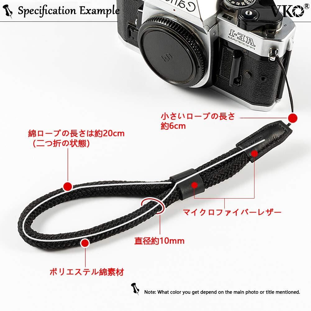 [VKO] カメラリストストラップ ハンドストラップ ミラーレス/コンパクトカメラ用 (黒色)