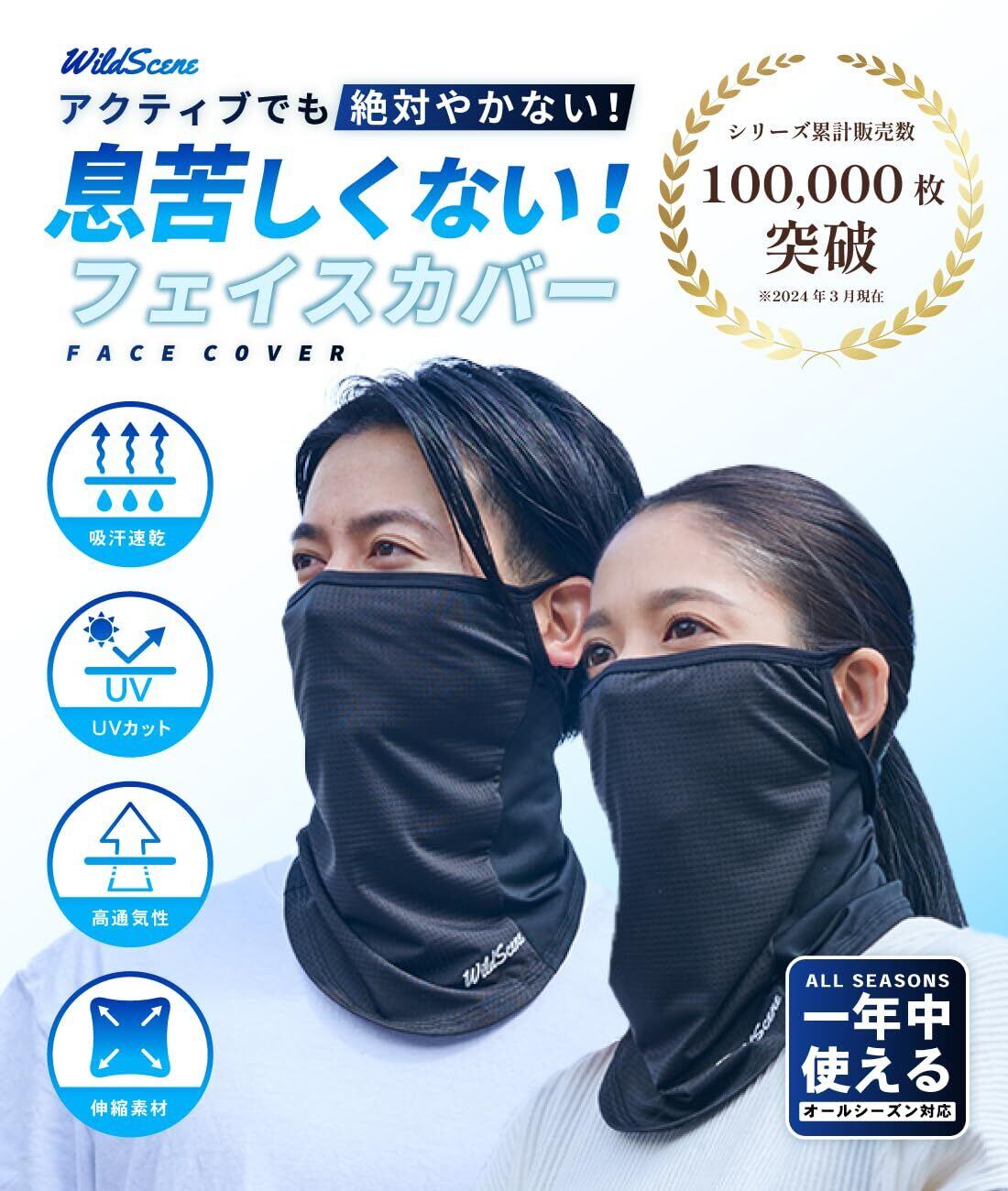 [Wild Scene] フェイスカバー uvカット 日焼け防止 UPF50+ 吸汗速乾 耳かけ メンズ レディース