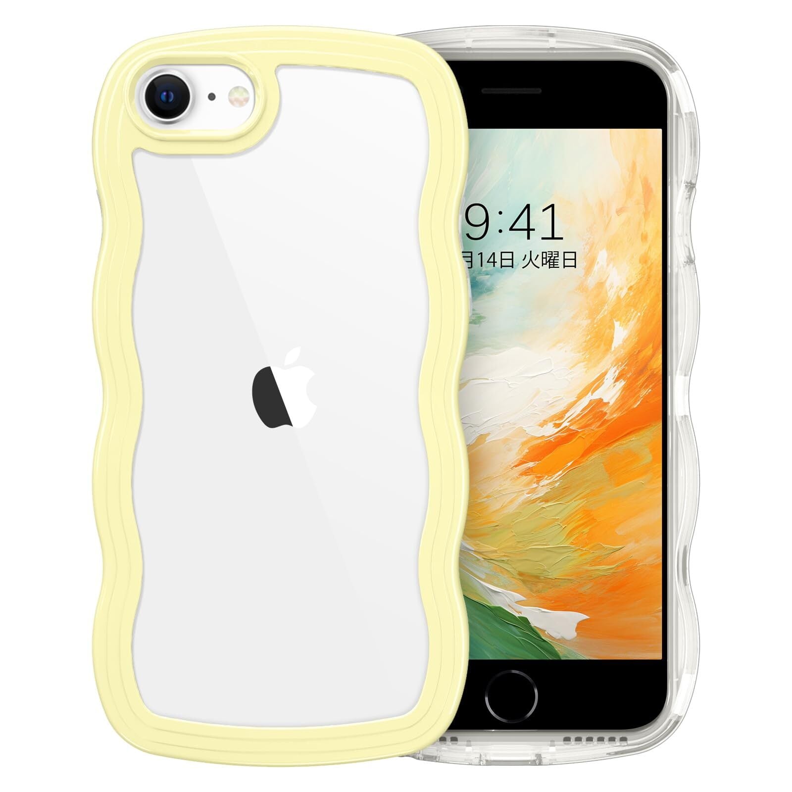 BENTOBEN iPhone SE 第3世代 用/iPhone SE2 / iPhone8 / iPhone7 ケース クリア TPU+PC 韓国 可愛い ウェーブ ソフト 滑り止め 薄型 軽量 耐衝撃 おしゃれ スマホケース ストラップホール付き アイフォン SE3 SE2 8 7 ケース 4.7インチ イエロー