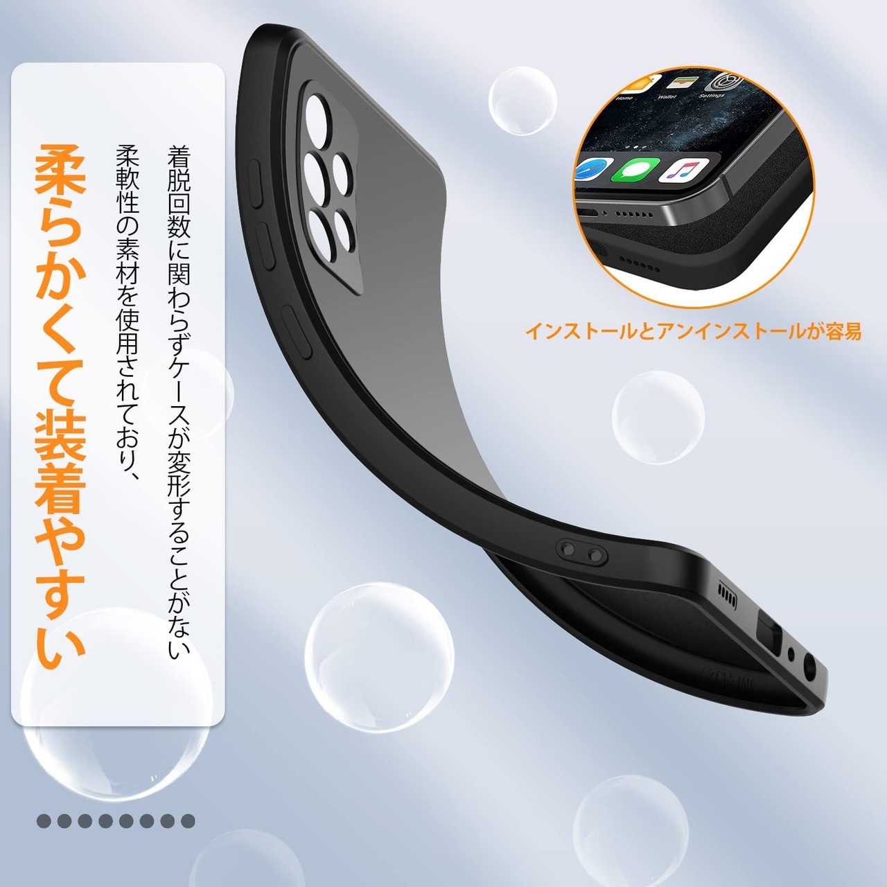 【優れる設計】従来のプラスチック製品と比較してゴムに近い素材なので滑りにくく、誤って手から落ちる危険が少なくなりました。ケースの内側は精細なマイクロファイバーを使用し、触り心地がよく携帯電話の背面への擦り傷を防げます,放熱性にも優れています。