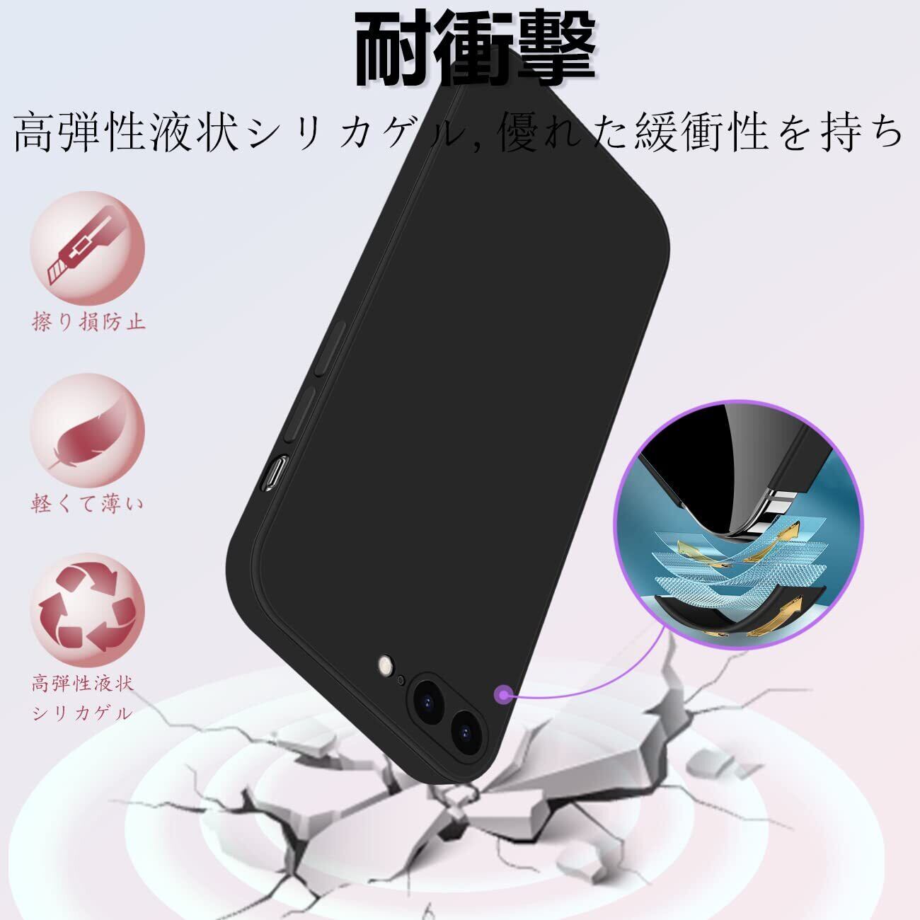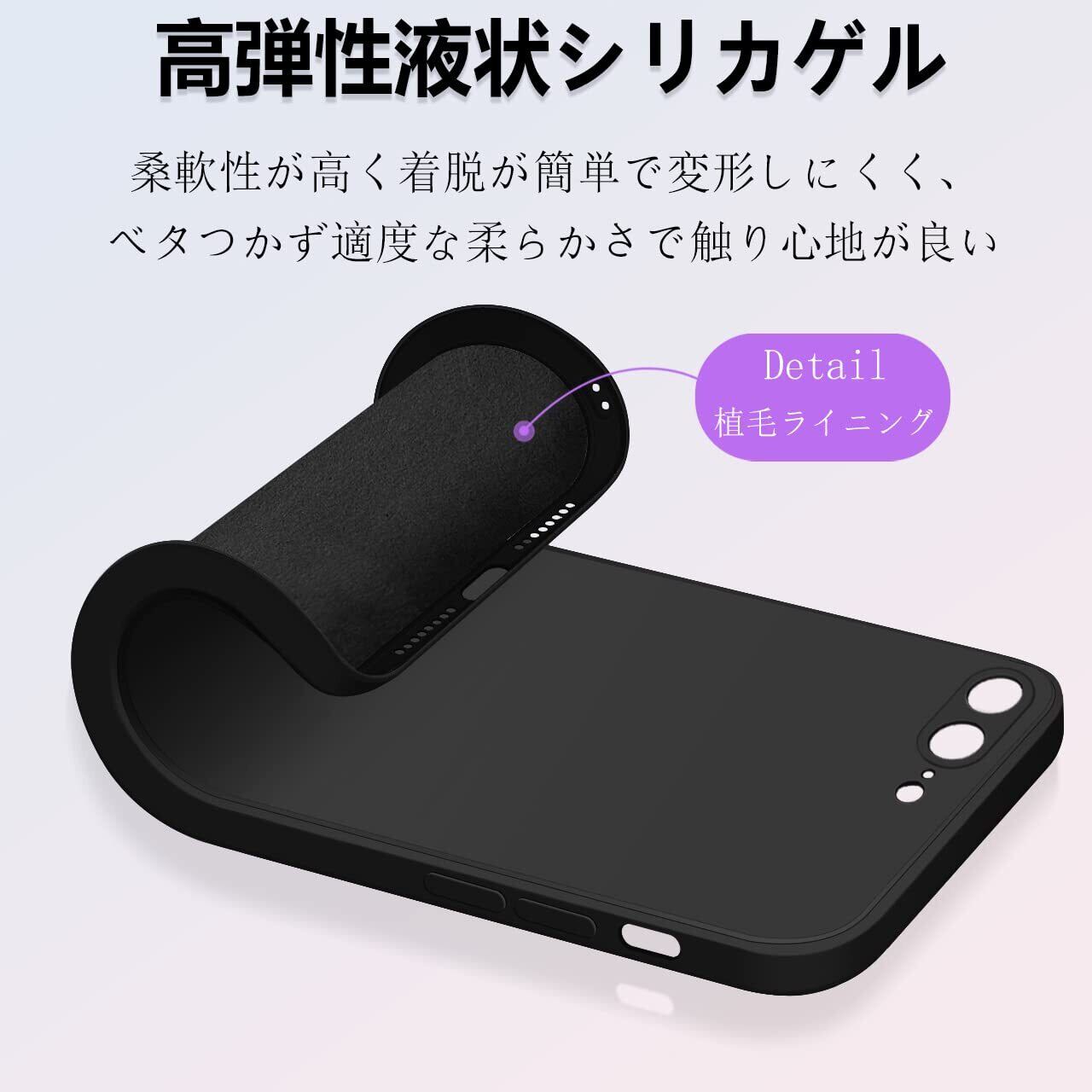 iPhone8Plus iPhone7Plus ケース リキッドシリコン 耐衝撃 レンズ保護 薄型 iPhone 8 Plus カバー 指紋防止 ソフト ワイヤレス充電対応 おしゃれ ストラップホール付き (ブラック)
