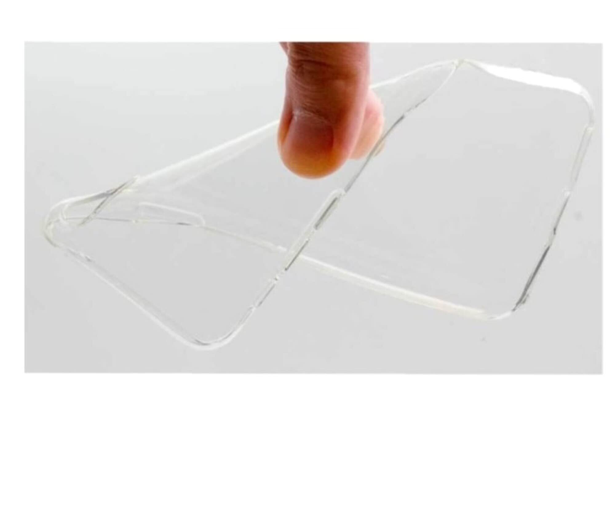 ■透明感の高いクリスタルクリア、ストラップホール付き。スピーカー部分は小穴、背面はドット加工になっております。