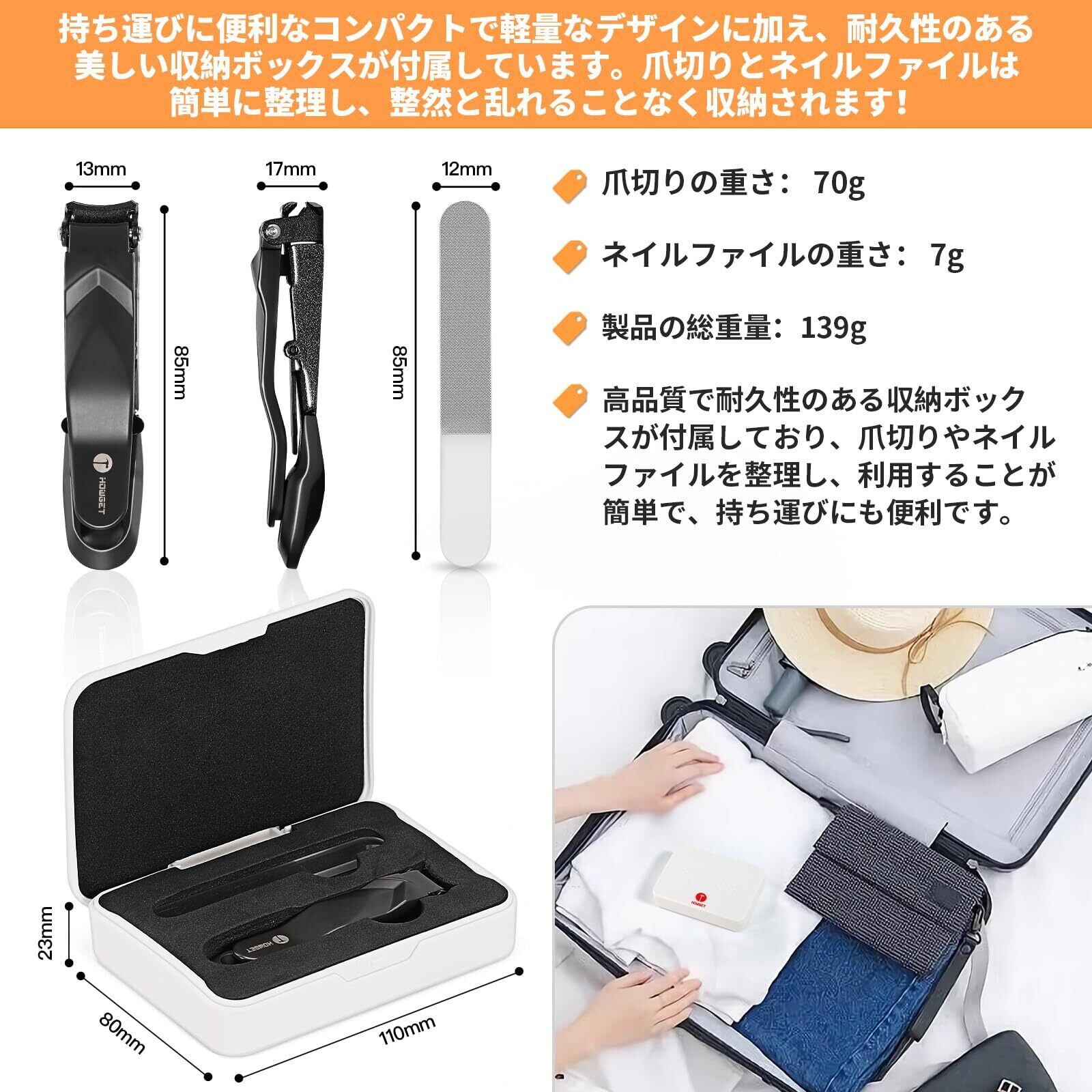 プレミアムセットで便利&ギフトに最適:コンパクト収納ケース付きで、旅行や出張にも持ち運び便利。高級感ある爪やすり付属で、切断後の仕上げもスムーズ。男女兼用・手足対応で家族全員でシェア可能。上質なパッケージで大切な方への贈り物としても喜ばれます。