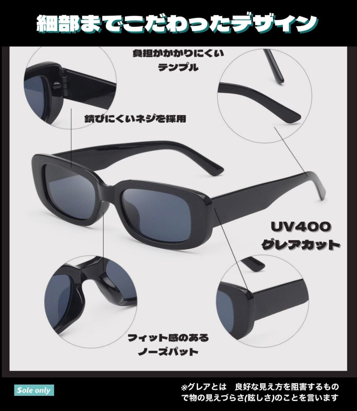 [$ole only] ソールオンリー サングラス スクエア レトロ 細め おしゃれ 運転用 ドライブ ファッション 小顔効果 ブラック 普通 シンプル さんぐらす 薄型 紫外線 メンズ レディース ユニセックス UV400