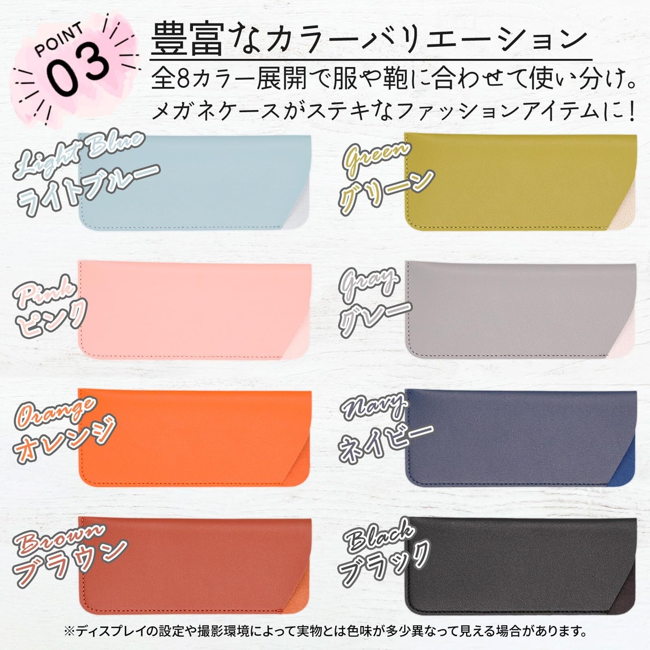 【豊富な全8カラーのバリエーション】シンプルなデザインながら、全8色の豊富なカラーバリエーションが魅力!あなたのスタイルや気分に合わせて色を選べます。どんなコーディネートにもマッチし、個性を引き立てるアイテムとしても活躍します。ぜひ、自分だけの特別なメガネケースを見つけてください。