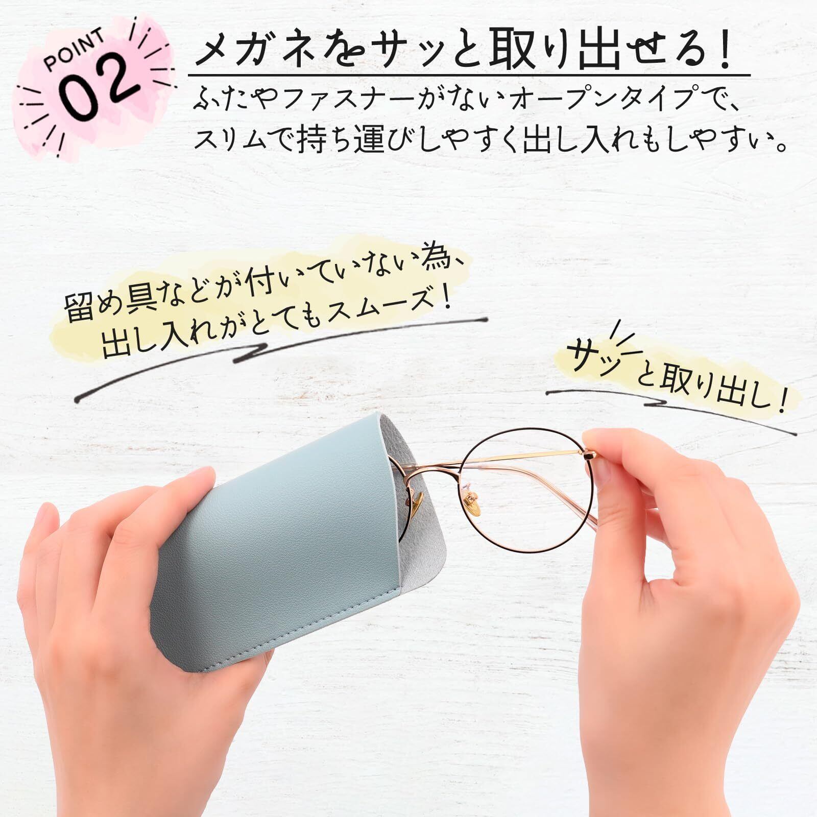 【スリム&軽量でスマートなデザイン】おしゃれなシンプルデザインで、スリムで持ち運びしやすく、メガネの出し入れがしやすいメガネケース!ふたやファスナーがないオープンタイプなので、一瞬でメガネを取り出すことが可能。コンパクトなサイズ感で、薄くてかさばらない設計は、バッグの中でもスペースを取りません。
