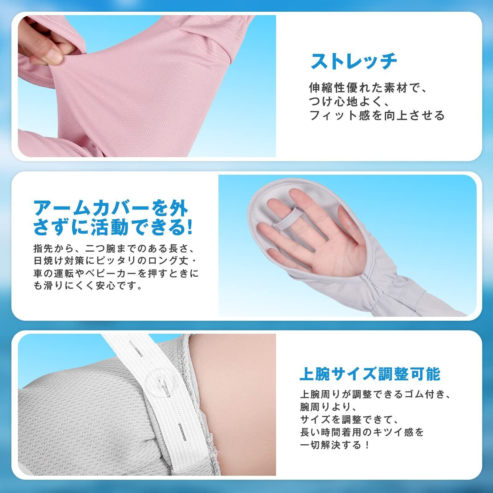 【UVカット】手の甲まで紫外線対策、春夏必須の便利な紫外線対策アイテム、強い日射損傷から腕を保護するUVカット機能付きアームカバー、UVカット率98%以上です。お肌にとって有害となる紫外線をカット、肌をすっぽりと隠して、高いUVカット率を発揮するアームカバーです!紫外線を強力に遮蔽し、紫外線と肌の直接の接触をカット、日焼け等肌に有害な損傷を最大限に保護できます。