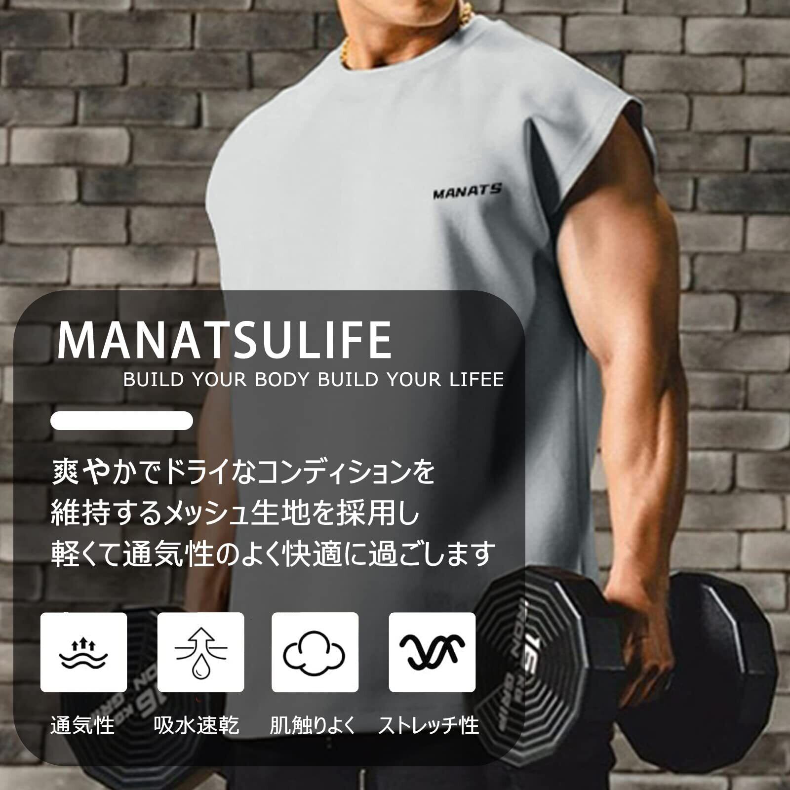 [Manatsulife] [マナツライフ] タンクトップ メッシュ メンズ ノースリーブ トレーニング 伸縮 吸水速乾 フィットネス 筋トレ スポーツウェア 夏 B09