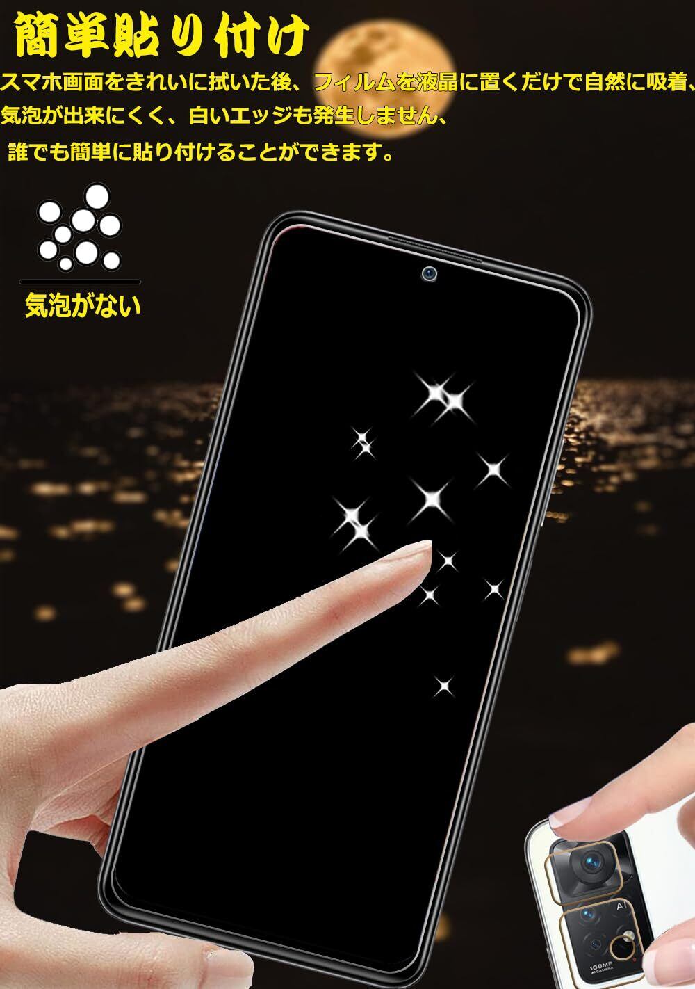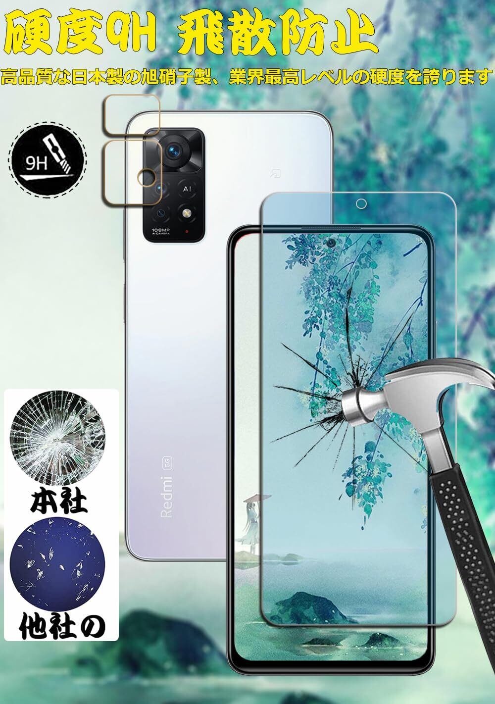 【ブルーライトカット 93%】【2+2枚入り】Redmi Note 11 Pro 5G 用の(2枚入り)ガラスフィルム+(2枚入り)カメラフィルム Note11 Pro 用の 目の疲れ軽減 液晶保護 フィルム 保護ガラス レンズ保護フィルム