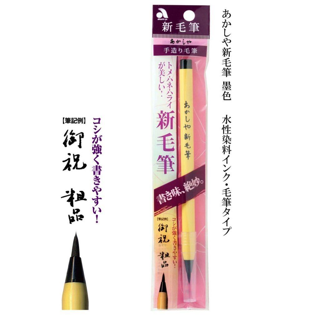 あかしや 筆ペン 新毛筆 黒 5本セット SA-300