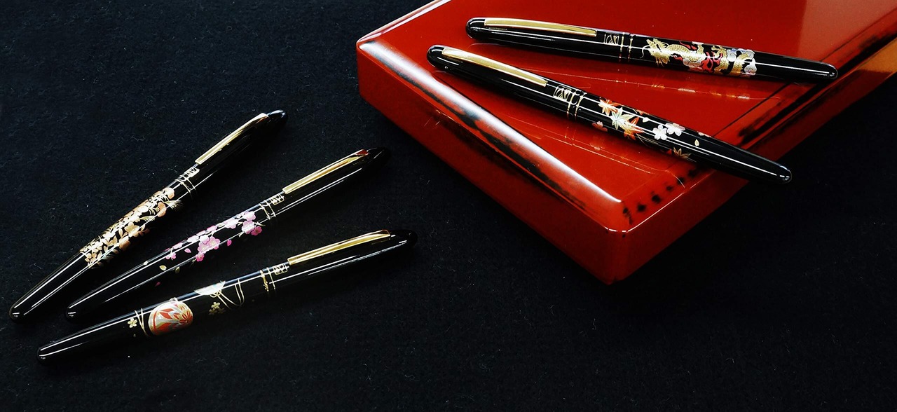 くれ竹万年毛筆(15号)、万年毛筆蒔絵物語専用替え穂首セット。