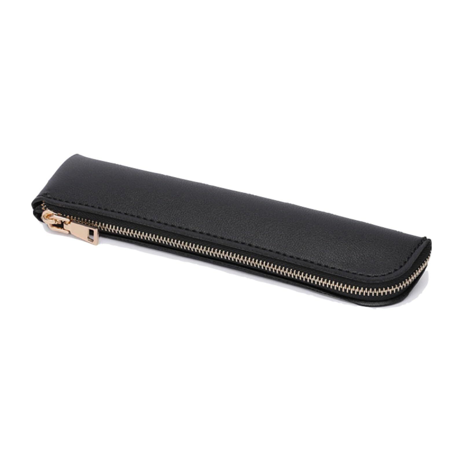 大人可愛い ペンケース スリム くすみカラー シンプル コンパクト (ブラック)