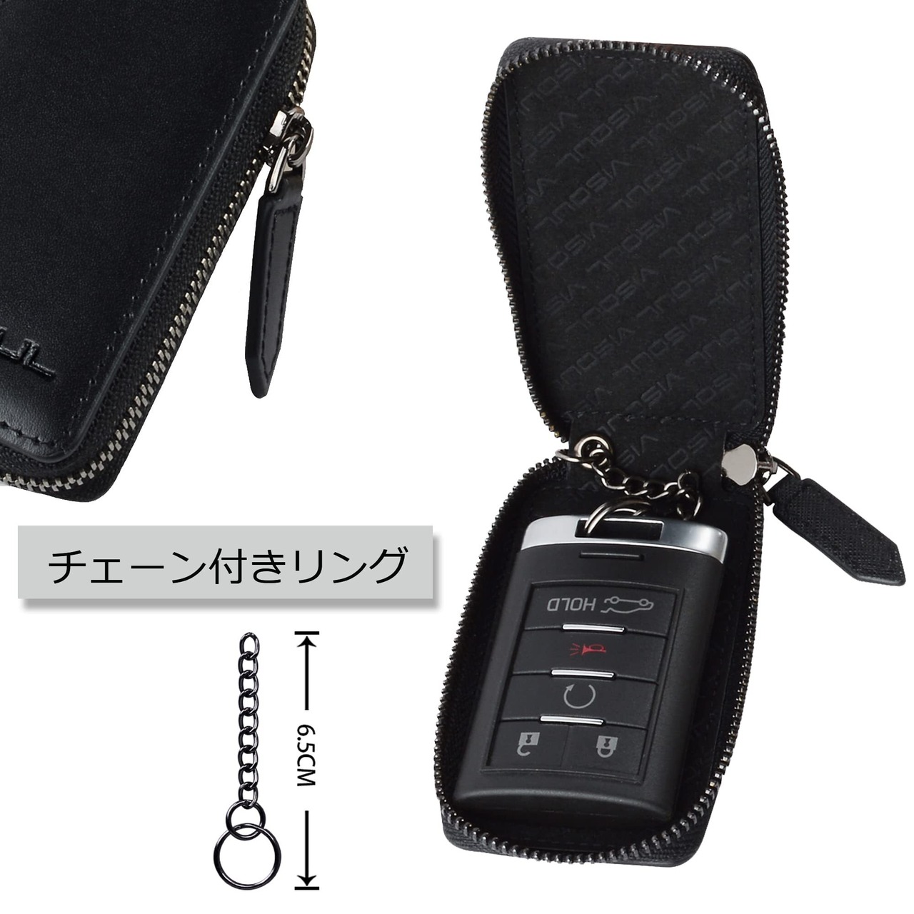 [VISOUL] スマートキーケース 本革 イタリア革 カバー型 キーホルダー 牛革 メンズ スマートキー 車 キーカバー (A型上下開け)