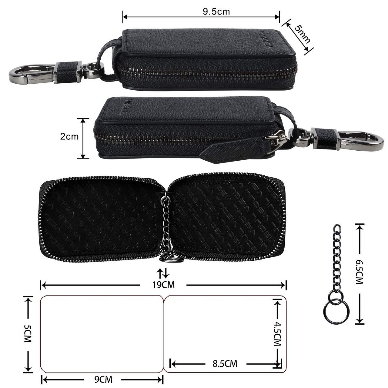 サイズ:外側W(幅)約6.5cm×H(高)約9.5cm■厚さ:約2cm。容量:裏側W(幅)約5cm×H(高)約8.5m、チェーン:6.5cm。※スマートキーケースシリーズ、長く使えるように、高級なイタリア革や丈夫なファスナーを使用します。裏側は、きちんとスマートキーケースを保護するよために、特殊素材を使用。