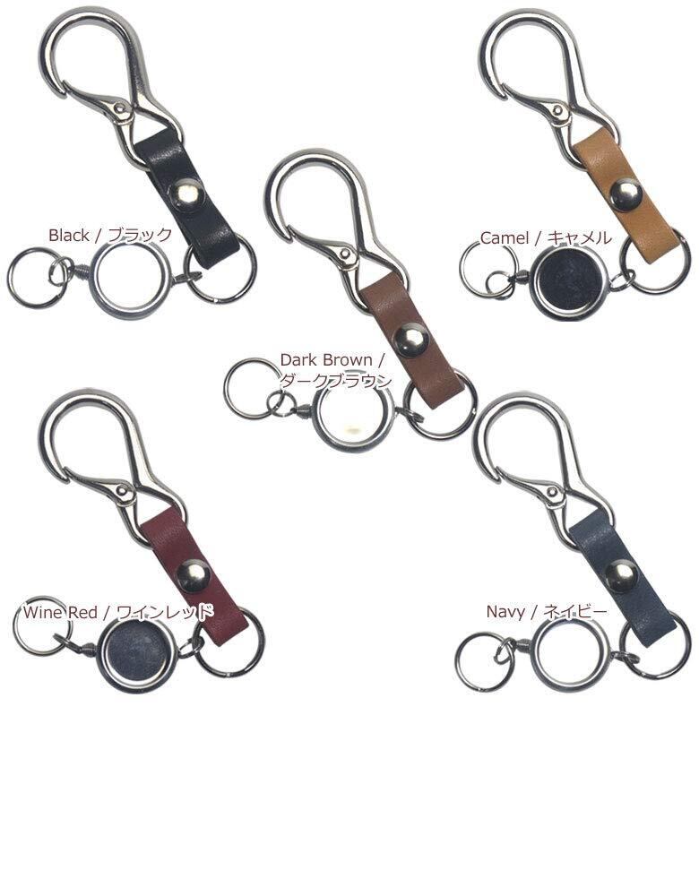 [highstyle] 栃木レザー&ミニカラビナ&シングルリールキー キーホルダー