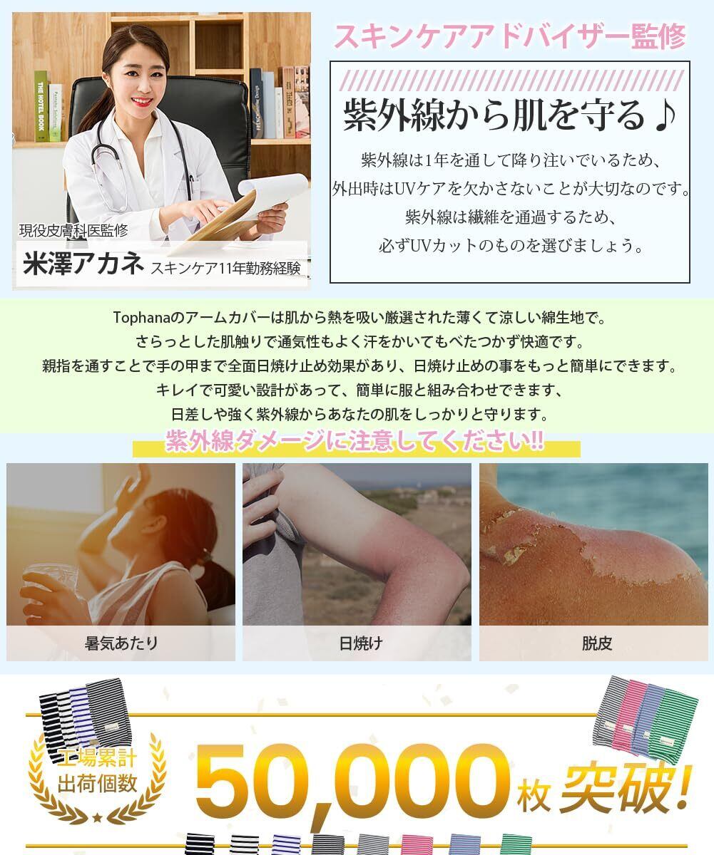 [Tophana] アームカバー レディース UVカット 【UPF50+(認証済み)・手の甲から腕まで360°日焼け防止】 アームスリーブ 夏 アームカバー 可愛い