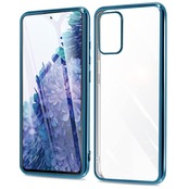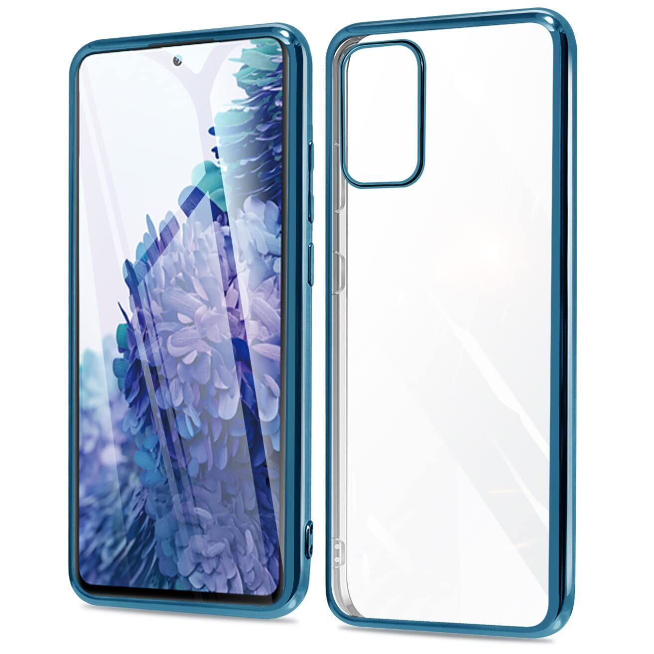 Galaxy S20 ケース クリア ギャラクシーs20 SC-51A/SCG01 カバー 透明 耐衝撃 軽量 薄型 tpu 背面クリア メッキ加工 スマホケース ソフト ストラップホール付き ワイヤレス充電対応(galaxyS20, ネイビーブルー)
