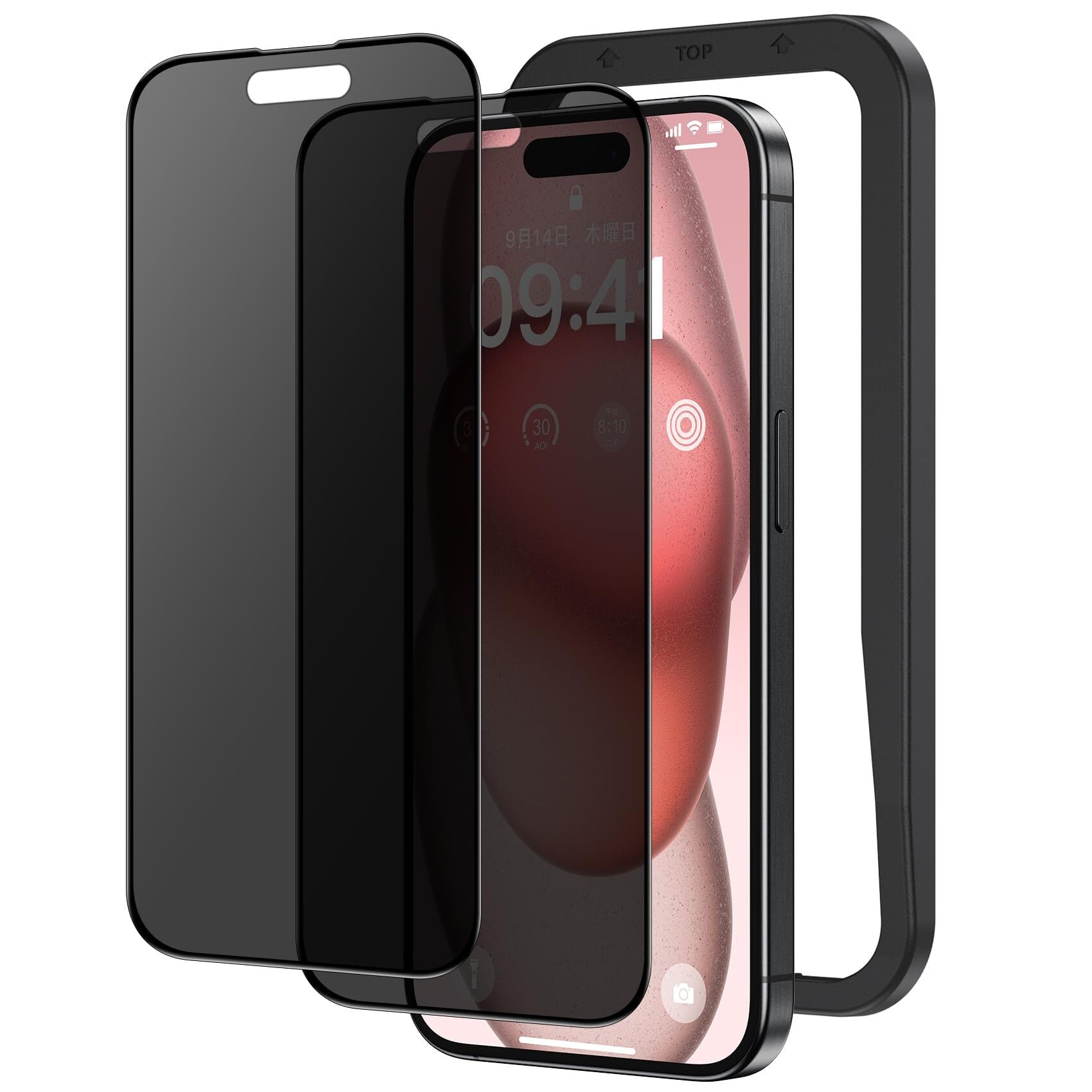 【特価セール】NIMASO 覗き見防止 iPhone 15 用 ガラスフィルム 全面保護 のぞき見防止 黒縁あり 強化ガラス フィルム 高感度タッチ ガイド枠付き 2枚セット アイフォン 15(6.1インチ)対応 NSP23K906 | ニコニコSHOP