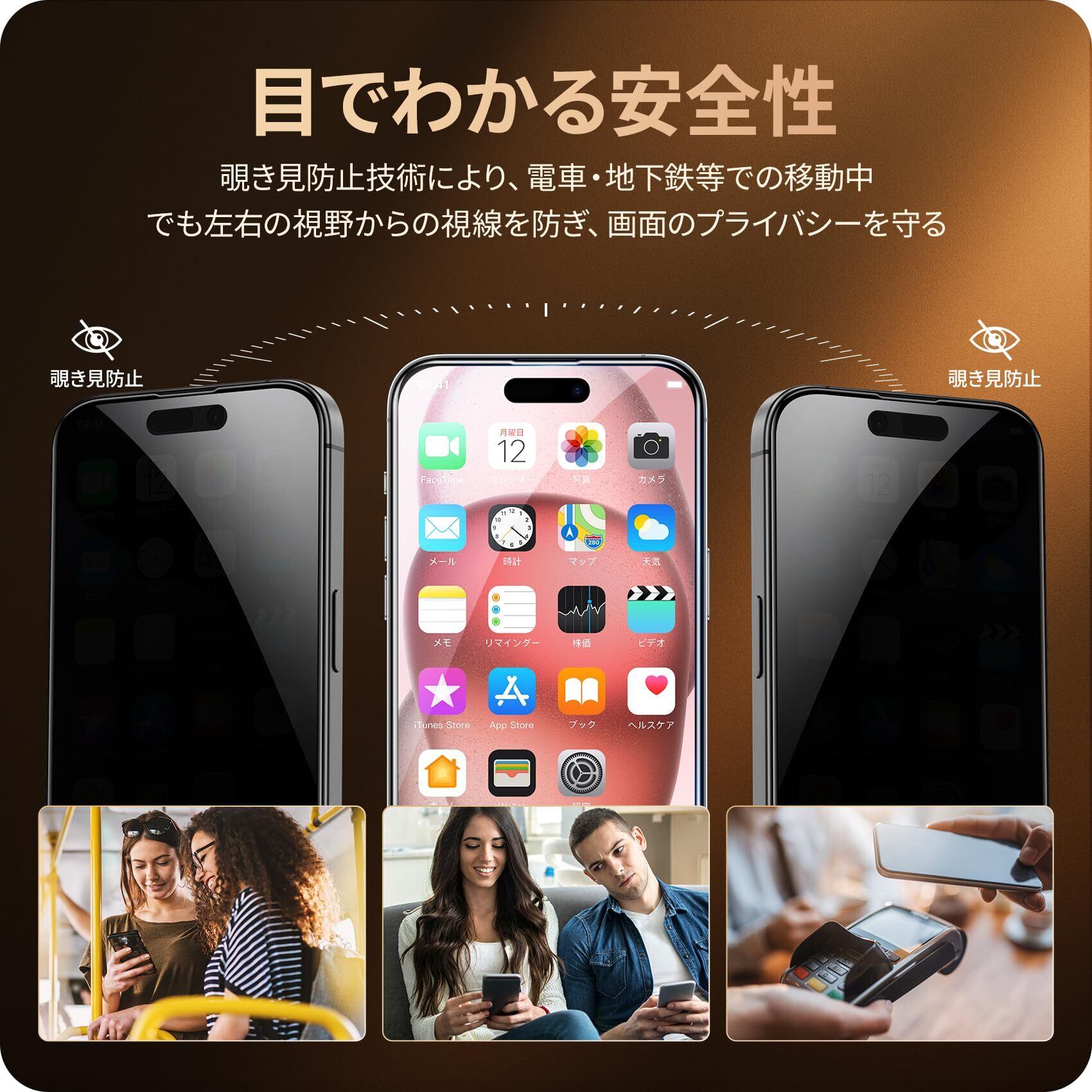 NIMASO 覗き見防止 iPhone 15 用 ガラスフィルム 全面保護 のぞき見防止 黒縁あり 強化ガラス フィルム 高感度タッチ ガイド枠付き 2枚セット アイフォン 15(6.1インチ)対応 NSP23K906