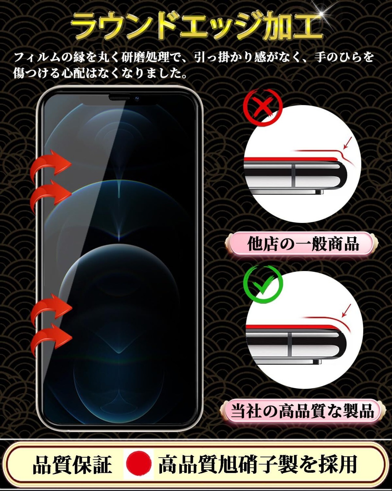 【のぞき見防止】最新鋭の偏光フィルター採用で操作性をキープしながらのぞき見を防止します。正面から見ると高透過率ではっきり見えますが、周りから見ると真っ黒で何も見られなくなり、満員電車やバスの中でもプライベートが守られて、ご安心ください!ご注意:のぞき見防止効果はPhone画面の明るさによって変わります。