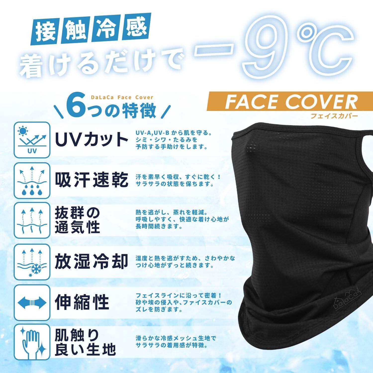 [DaLaCa] フェイスカバー uvカット 日焼け防止 UPF50+ レディース メンズ 呼吸しやすい すぐに乾く 耳掛けタイプ (3色セット)