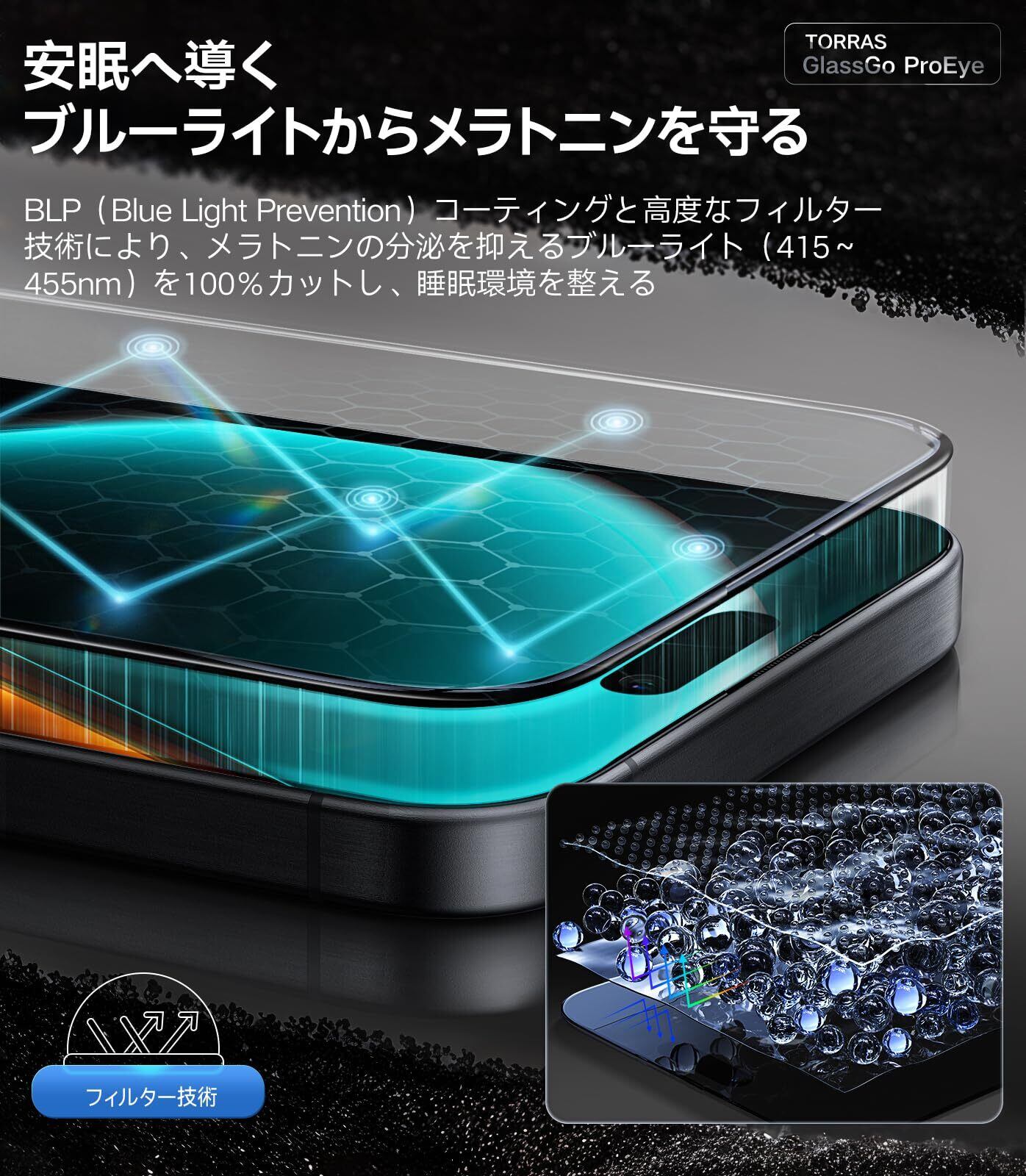 【在庫処分】「二重保護・目と睡眠を労わる」TORRAS iPhone 16用 ガラスフィルム iPhone 15用 ガラスフィルム ブルーライトカット 無色透明 米軍規格 全面保護 9H越え 航空宇宙材料 防指紋 ガイド枠 2枚 6.1インチ アイフォン16用/15用 保護フィルム GlassGo ProEye | ニコニコSHOP