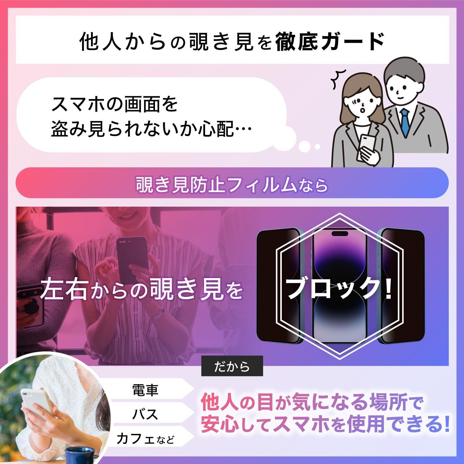 特徴 フルカバレッジ, ブルーライトブロック, 硬度10H, 覗き見防止